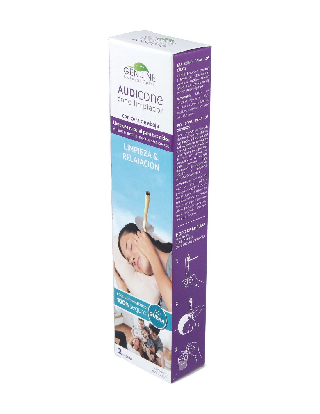Realizado con tejido natural y cera, contribuye a la eliminación de la cera de los oídos y restablece el equilibrio de la presión auricular evitando la desagradable sensación de oídos tapados.