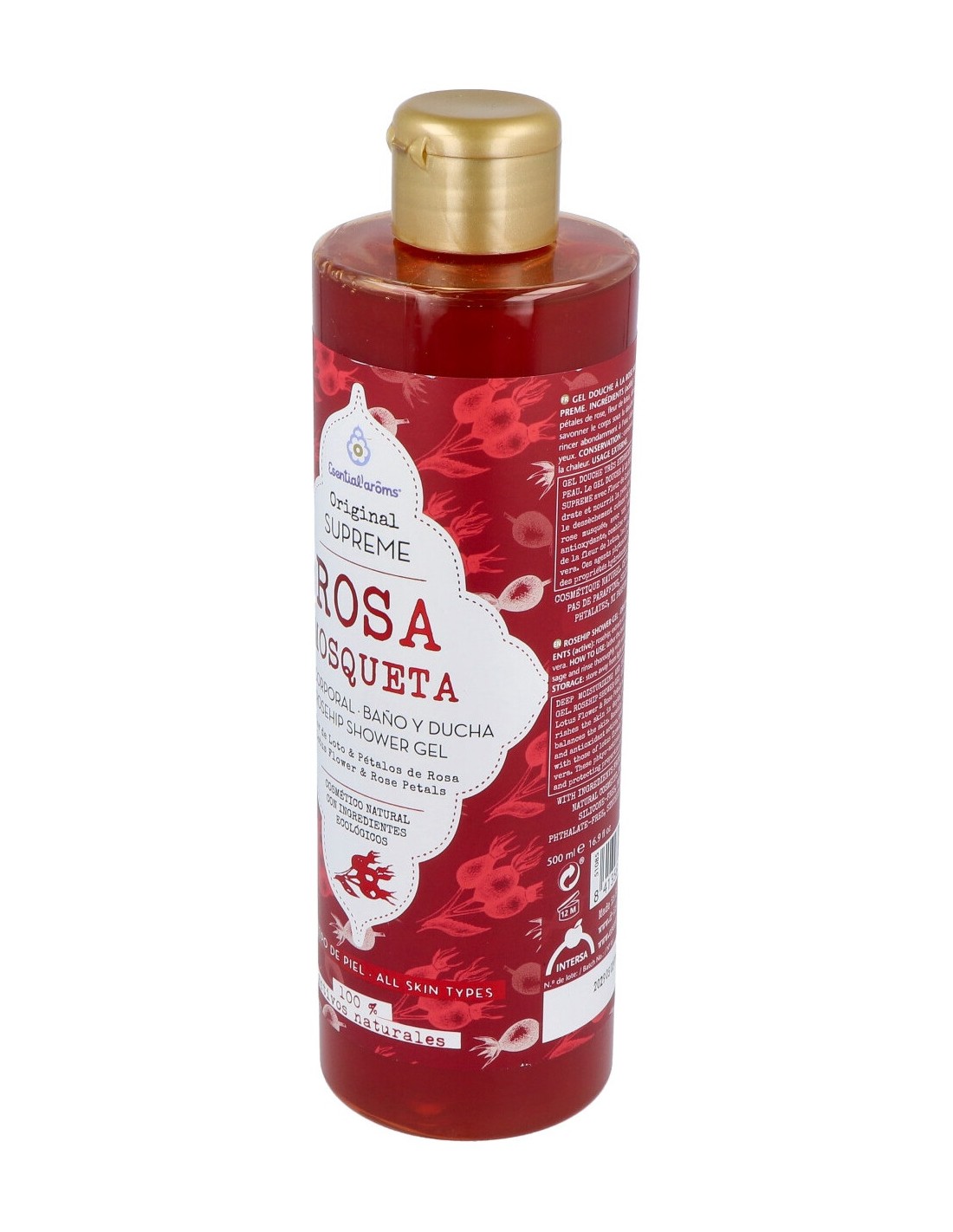 Gel corporal de Esential'Aroms, elaborado a base de rosa mosqueta. Ayuda a limpiar la piel y proporciona una acción regeneradora, hidratante y cicatrizante. La rosa mosqueta de acción regeneradora y antioxidante une sus propiedades a las de la flor de loto, los pétalos de rosa y el aloe vera. Es un cosmético 100% natural. Es un producto vegano. Indicado para pieles todo tipo de piel.