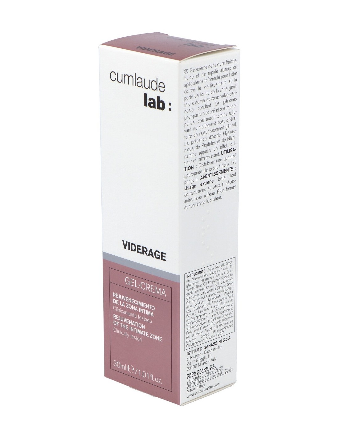 Gel-crema de textura fresca, fluida y de rápida absorción formulado de forma específica para contrarrestar el envejecimiento y la pérdida de tono de la zona genital externa y de la zona vulvo-perineal femenina durante el periodo pre y posmenopausia y en el posparto. Ideal también como coadyuvante en el tratamiento posquirúrgico de rejuvenecimiento genital. Debido a la presencia de Ácido hialurónico, Péptidos y Niacinamida ejerce una notable acción tonificante y reafirmante.CUMLAUDE VIDERAGE 30ml. de RILASTIL - CUMLAUDE