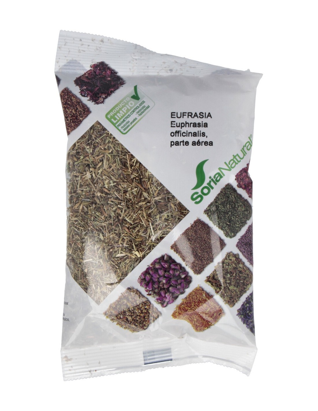 Soria Natural Eufrasia Bolsa 50g es una planta natural para tomar en infusiones, ideales por sus múltiples beneficios terapéuticos. La Eufrasia tiene propiedades astringentes, antinflamatorias, antisépticas y cicatrizantes. Sus múltiples cualidades terapéuticas la hacen ideales en el tratamiento de las irritaciones oculares, conjuntivitis e inflamación de los párpados. Además, es una buena aliada para aliviar las digestiones pesadas, la faringitis y combatir las infecciones en la boca y orejas. La Eufrasia también es útil para tratar los brotes de alergia con rinitis y tos.
