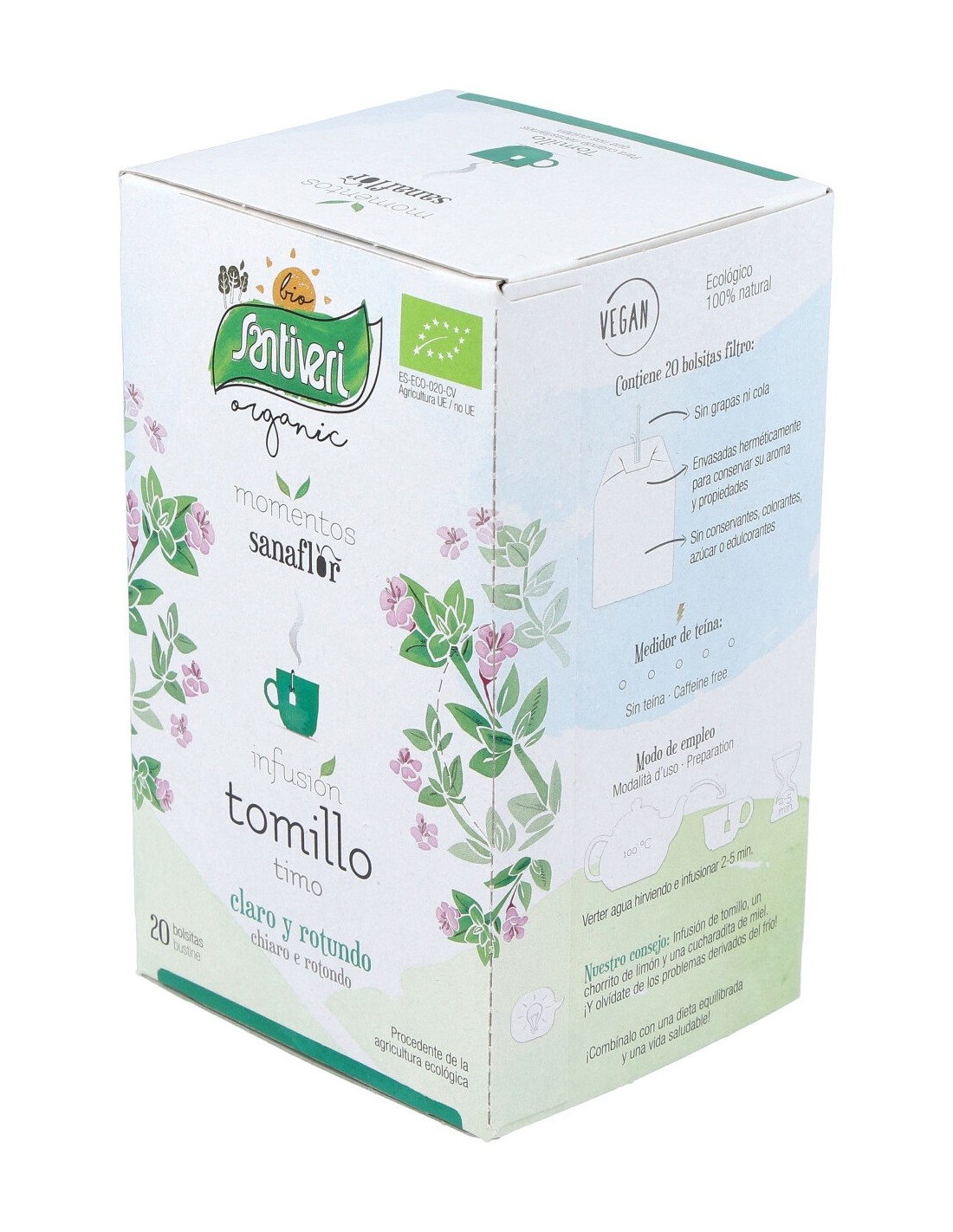 100 % tomillo (Thymus vulgaris L. - hojas y sumidades floridas) procedente de la agricultura ecológica.