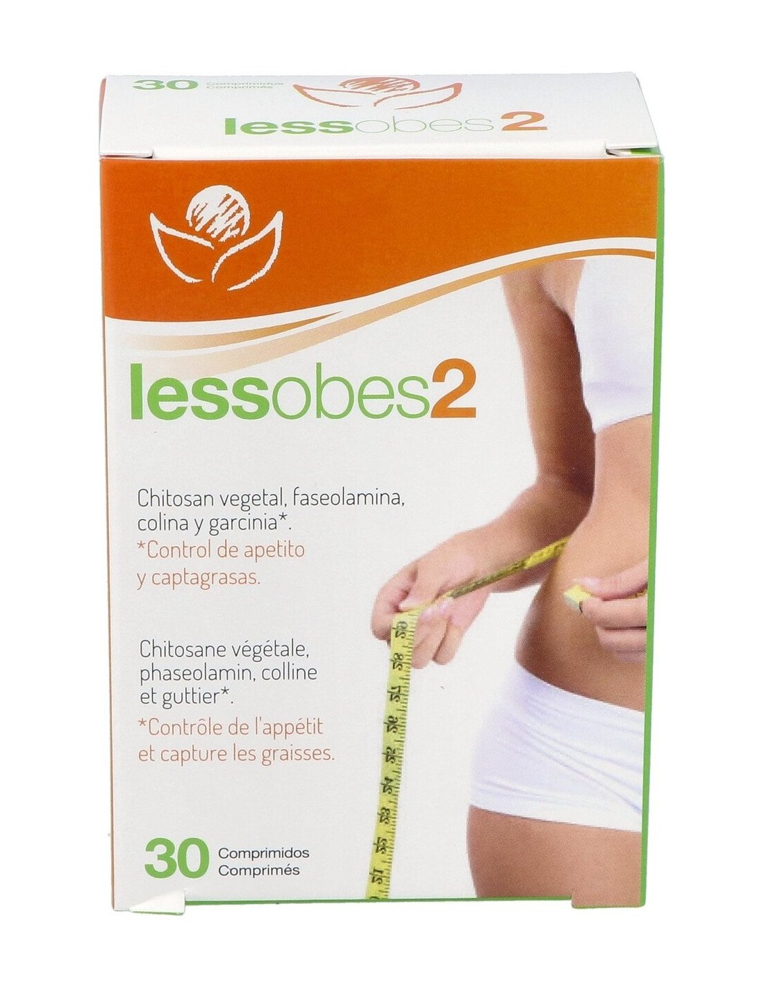 Extracto estandarizado de garcinia cambogia (Garcinia cambogia Desr.) 1500 mg (60% HCA), Chitosán vegetal 750 mg, extracto estandarizado de faseolamina (Phaseolus vulgaris L.)Phase2 R 450 mg, colina bitartrato 123 mg, picolinato de cromo, agentes de carga (celulosa microcristalina y fosfato dicálcico), antiaglomerante (estearato de magnesio).