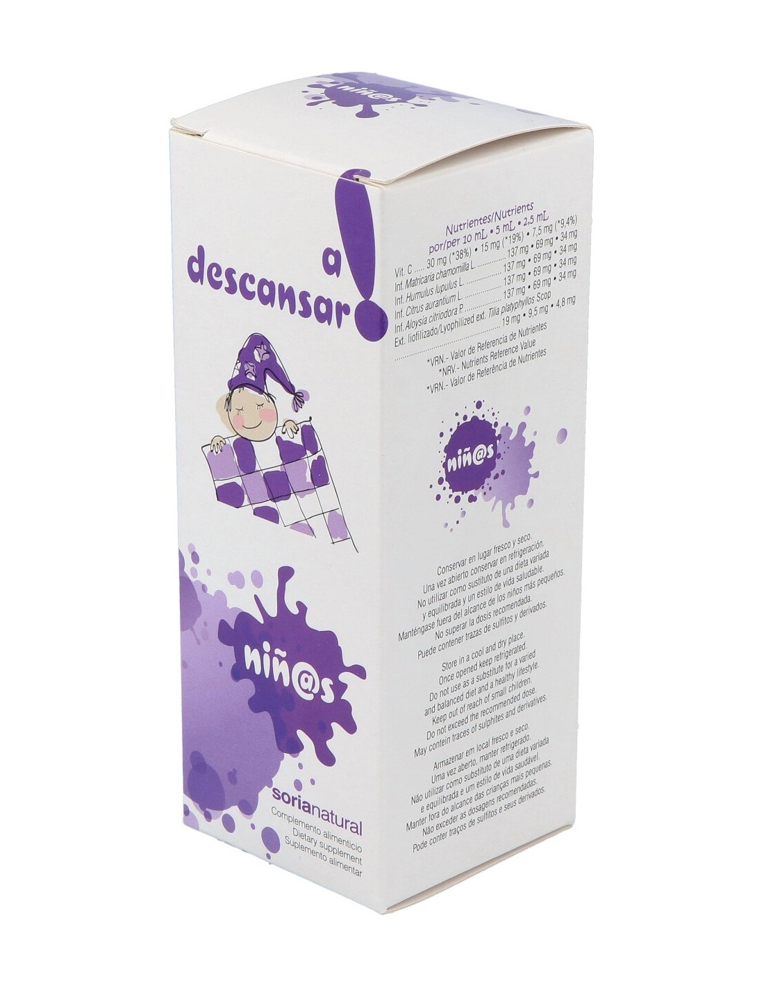 Elaborado con ingredientes naturales, plantas y concentrados de frutas que ayudan en casos de agitación e intranquilidad infantil y a que los niños tengan un sueño saludable y natural.A DESCANSAR NIÑ@S jarabe 150ml. de SORIA NATURAL