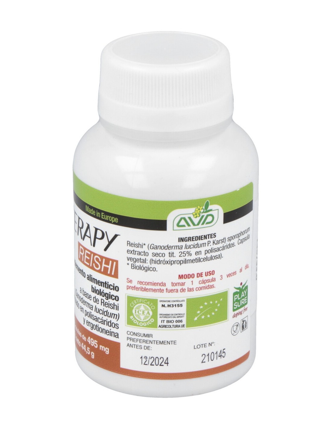 "Complemento alimenticio en forma de comprimidos, elaborado con una fórmula a base de ingredientes de agricultura ecológica que ayuda a regular y fortalecer el sistema inmunitario y las defensas naturales del cuerpo. Está compuesto por extracto de Reishi, también conocido como """"Hongo de los mil años"""" u """"Hongo de la inmortalidad"""", considerado tradicionalmente como un remedio útil para restablecer el equilibrio del organismo, ayudando a mejorar la resistencia a las enfermedades.