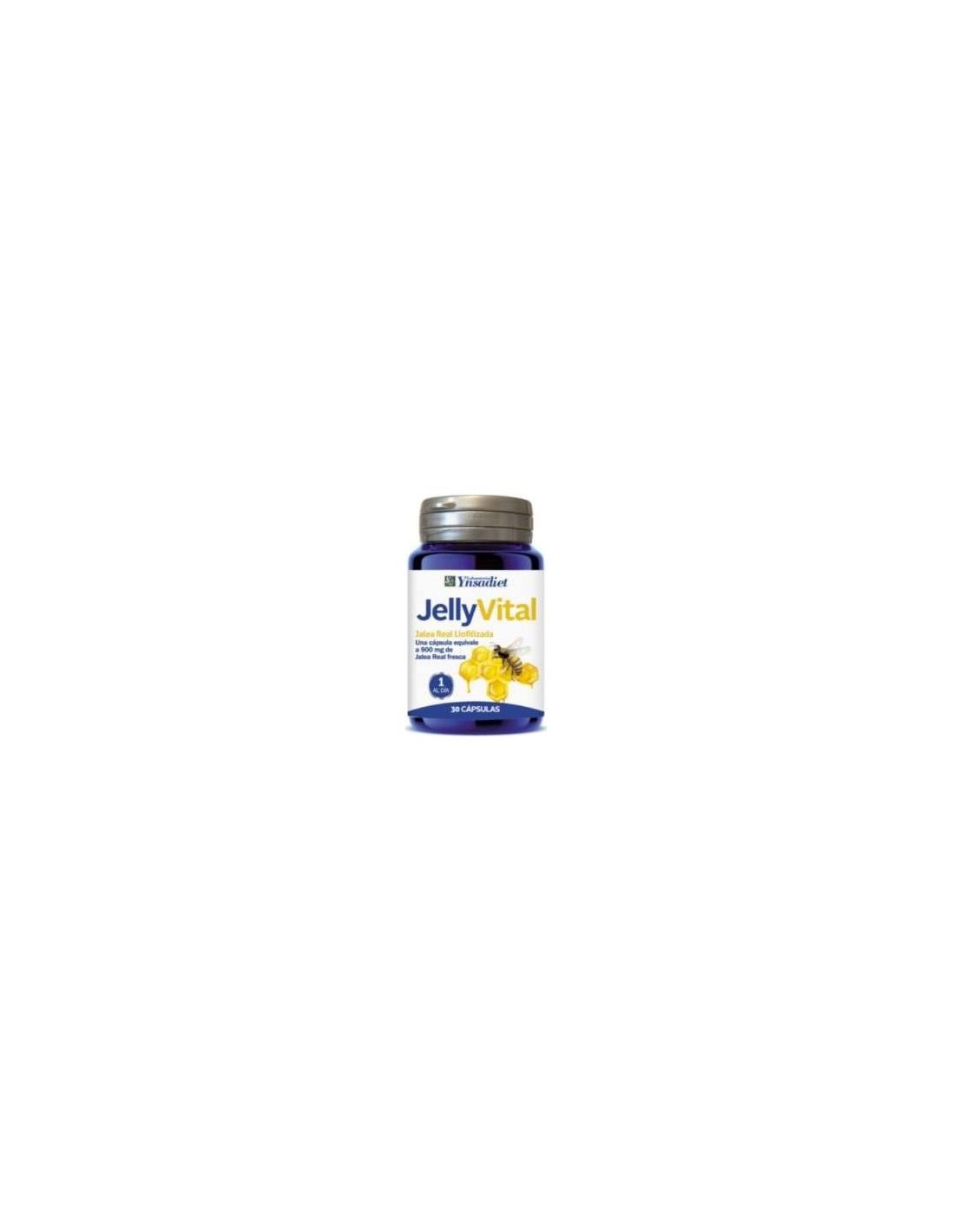 Ynsadiet Jelly Vital es un complemento alimenticio de jalea real liofilzada, es decir, 3 veces más concentrada que la jalea real fresca. Es rica en vitaminas del complejo B (B1, B2, B6, ácido fólico), A, C, E y minerales (fósforo, hierro, calcio, cobre y selenio).