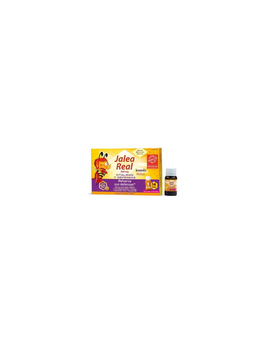 Juanola Jalea Real Niños Vitalidad y Defensas 14 Viales es un complejo vitamínico quefortalece las defensas naturales del organismo. Con própolis, realiza también una función antiinflamatoria. Aporta energía, reduce la sensación de fatiga e incrementa la resistencia. Se activa el sistema inmunitario y estimula el crecimiento.