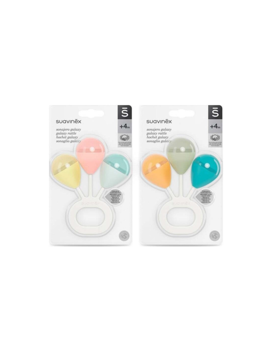 - El sonajero Suavinex Galaxy presenta un diseño colorido y atractivo que captura la atención de los bebés. Las bolas de colores vibrantes son atractivas para los ojos curiosos de los bebés.