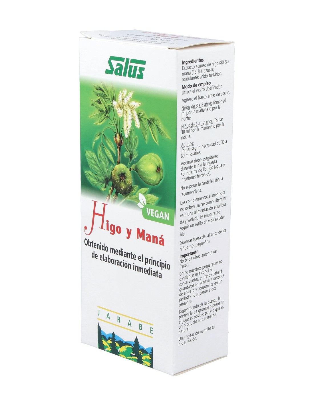 Complemento alimenticio que contribuye a regular es tránsito intestinal y a prevenir el estreñimiento. Formulado a base de extracto líquido de higos y maná, que favorecen el alivio de las digestiones pesadas. Además, es fuente natural de fibra soluble, potasio, calcio, magnesio, hierro, cobre, vitaminas A y K. También ayuda a reforzar la protección celular antioxidante y favorece el equilibrio mineral del organismo. Apto para veganos. Sin gluten, alcohol, colorantes, lactosa ni conservantes. Se presenta en una botella de vidrio 100% reciclable.