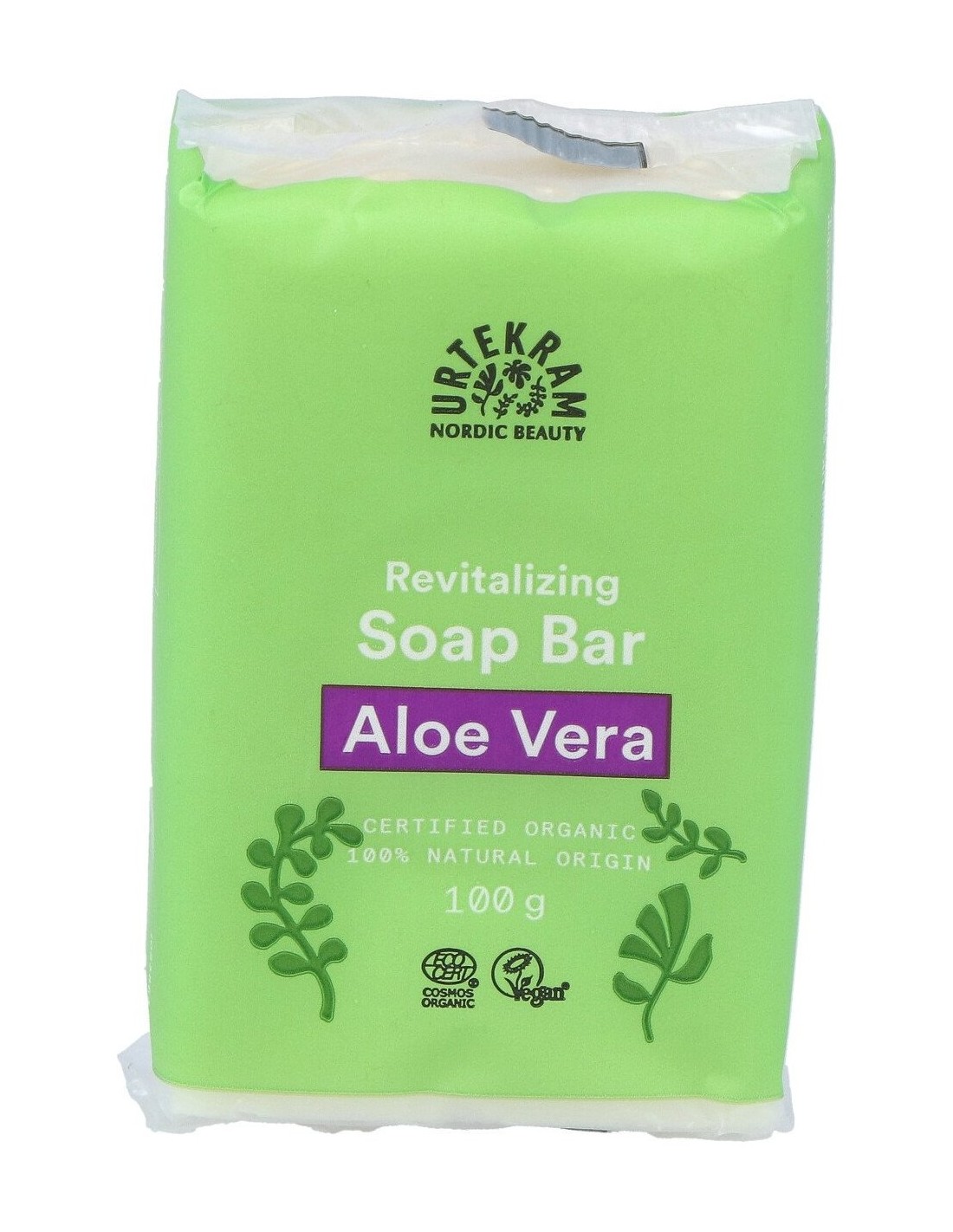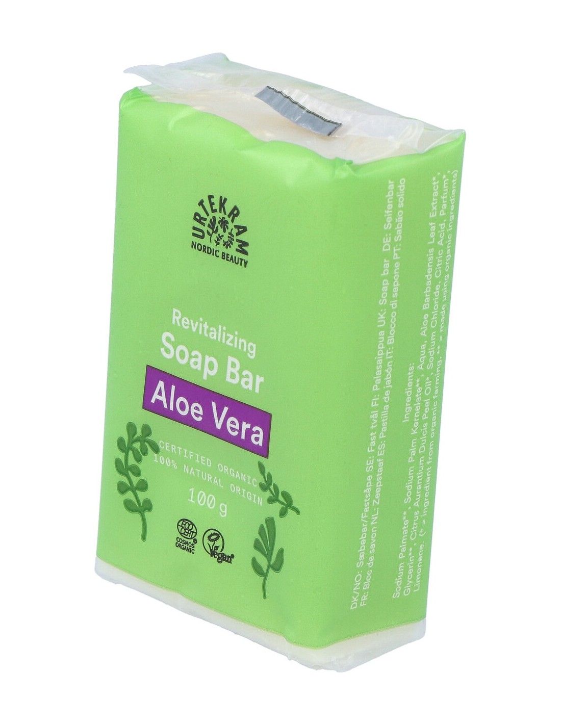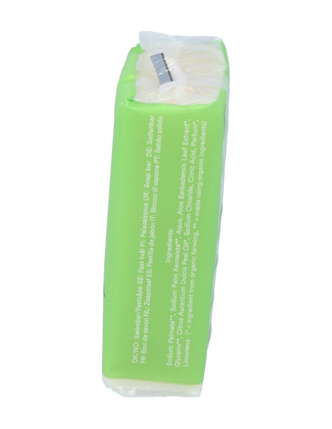 Pastilla jabón con aloe vera. Jabón exquisito y fragante de burbujas suaves con aloe vera y glicerina nutritiva que lavan las manos dejándolas limpias y suaves. El jabón de aceite de palma produce una espuma suave. El aroma de naranjas maduradas por el sol añaden un toque frescor y finura. COSMOS ORGANIC certificado por Ecocert Greenlife. Vegano. No testado con animales.