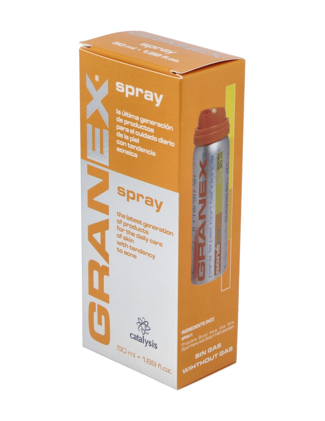 Granex Spray 50 Ml es un producto recomendado para personas con piel grasa o con tendencia a padecer acné. Granex está compuesto por ingredientes que ayudan a eliminar diferentes imperfecciones de la piel como: espinillas, puntos negros o el exceso de grasa.