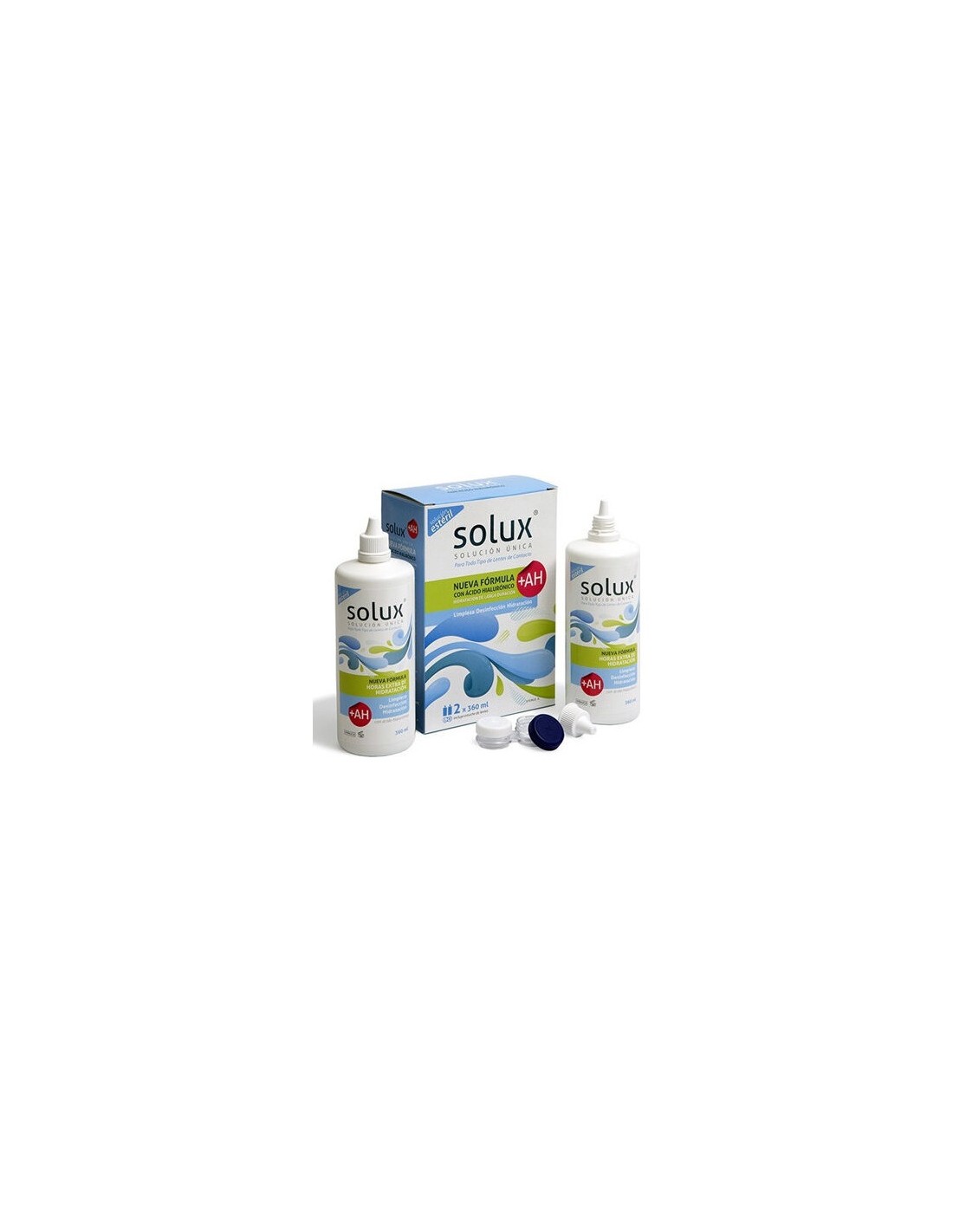 La solución única de Solux desinfecta, limpia y elimina las bacterias que se acumulan en los lentes de contacto blandas. Además, esta nueva fórmula a base de ácido hialurónico también proporciona una hidratación de larga duración.
