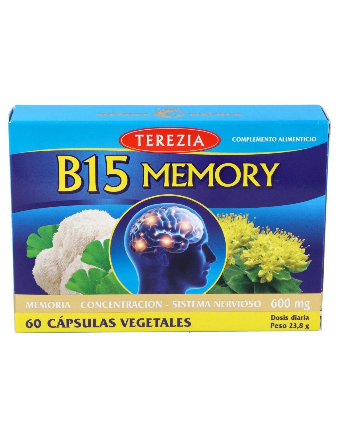 Complemento alimenticio formulado a base de setas y plantas. La rica composición resulta útil para el rendimiento intelectual de estudiantes y personas mayores. La fórmula contiene melena de león, cúrcuma longa, Bacopa monnieri, Rosa Polar y Ginkgo Biloba. Contribuye al funcionamiento del sistema nervioso, a la concentración, a la memoria y a mantener la función cognitiva estable y en óptima condiciones. Además, mantiene el equilibrio del sistema nervioso y ayuda a mantener la memoria, que disminuye con la edad.