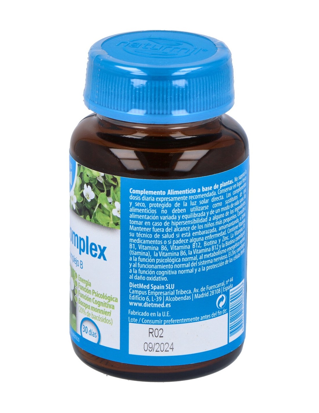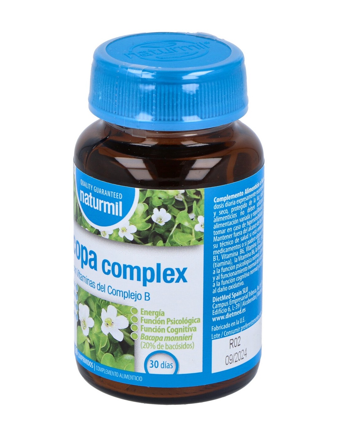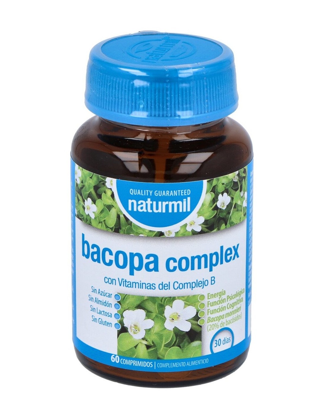 Bacopa (contiene al menos 20% bacósidos) 600 mg Vitamina B1 2,2 mg (200% VRN*), Vitamina B6 2,8 mg (200% VRN*), Vitamina B12 5 u µg (200 % VRN*), Biotina 100 µg (200% VRN *), Zinc 20 mg (200% VRN*).