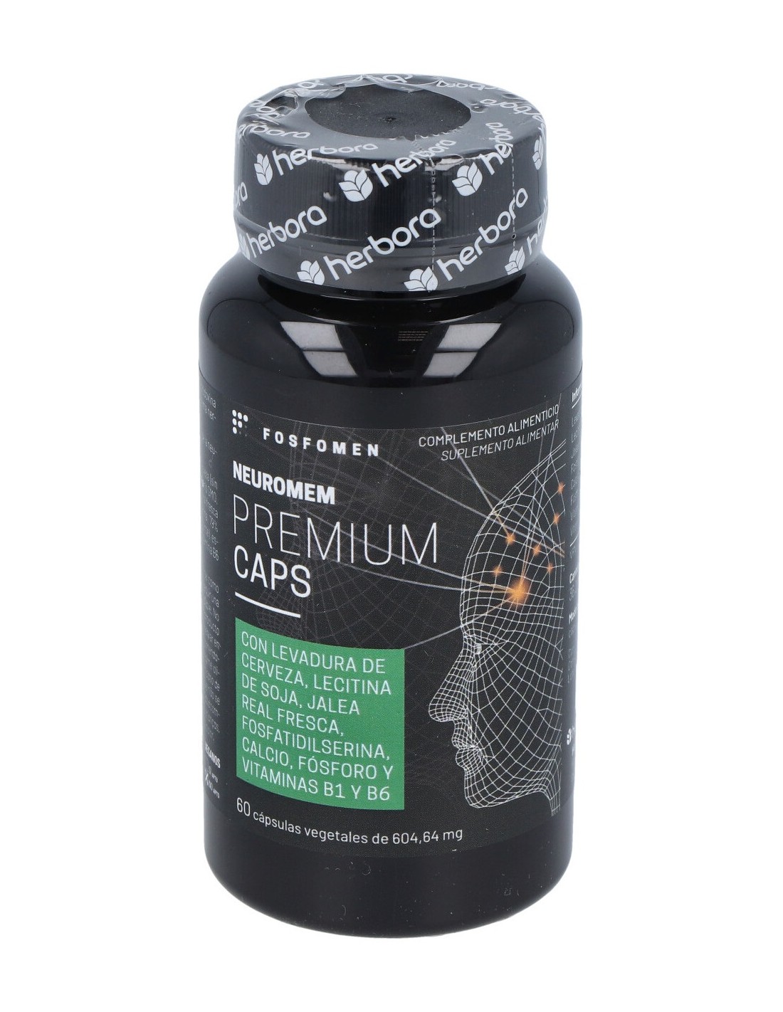 Complemento alimenticio rico en fósforo, calcio, levadura de cerveza (sin gluten) y vitaminas B1 y B6 al 100% de la VRN. También contiene fosfatidilserina. La tiamina o vitamina B1 y la vitamina B6 o piridoxina contribuyen al funcionamiento normal del sistema nervioso y a la función psicológica normal- El calcio contribuye al funcionamiento normal de la neurotransmisión. Apto para celíacos, diabéticos y para intolerantes a la lactosa. No apto para veganos. Este producto no tiene contraindicaciones. No obstante en personas sensibles o alérgicas a algún componente estaría contraindicado. Por esto es recomendable leer bien todos los ingredientes de la composición. Personas que se estén medicando o mujeres que estén embarazadas o en periodo de lactancia, deben consultar a su médico o especialista la toma de Complementos Alimenticios.
