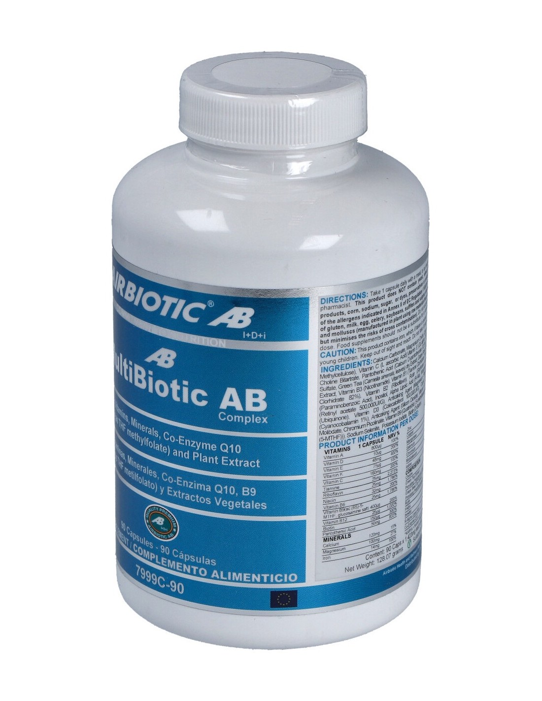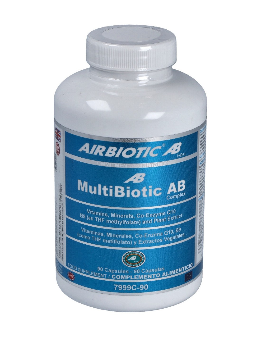 Multinutriente para adultos, dirigido a aquellas personas en edad adulta que quieran mejorar sus niveles de energía puesto que aporta una significativa cantidad de vitamina B5 que mantiene equilibrado el metabolismo energético, mejora el rendimiento intelectual, y reduce los síntomas de cansancio y debilidad. Apto para vegetarianos.MULTIBIOTIC AB complex 90cap. de AIRBIOTIC