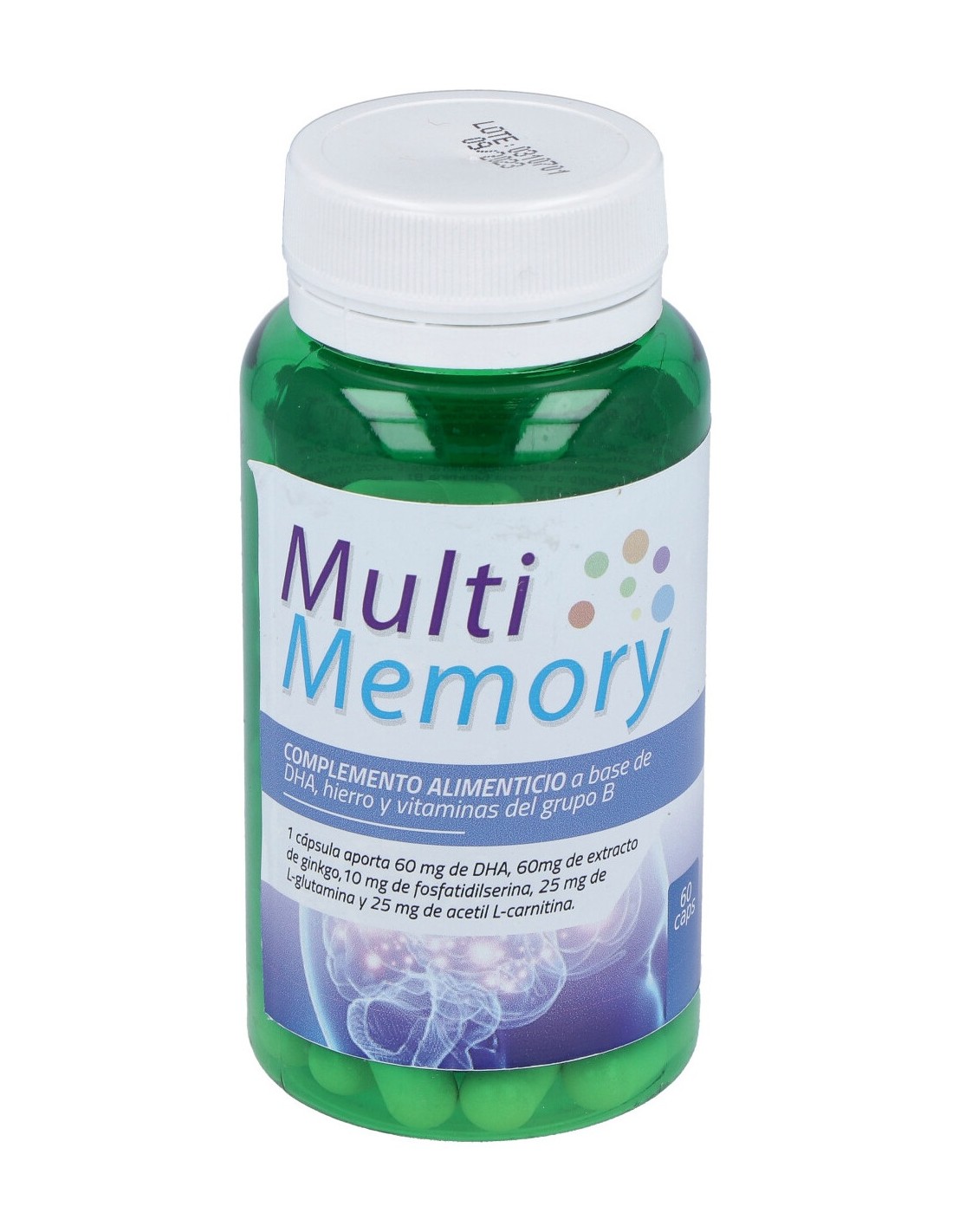 Complemento alimenticio en forma de cápsulas, elaborado a base DHA, un tipo de ácido graso omega 3, L-glutamina, L-carnitina, extractos de ginkgo biloba y vitaminas, que favorecen una mayor conexión neuronal para mejorar la memoria.