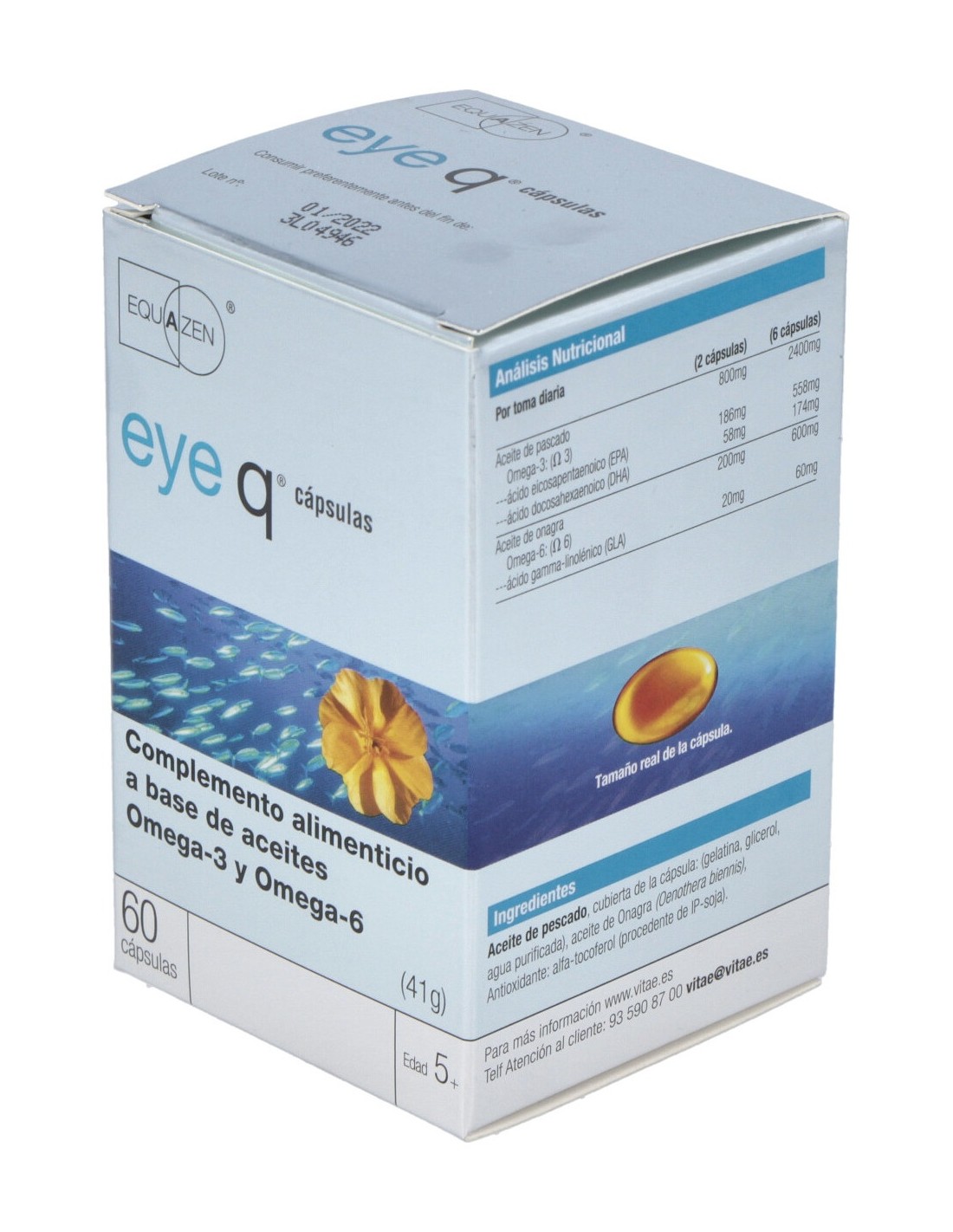Vitae Eye q 60 cápsulas es un complemento alimenticio a base de aceites Omega-3 y Omega-6. De origen marino y vegetal, este suplemento ayuda a favorecer el funcionamiento neurológico normal.