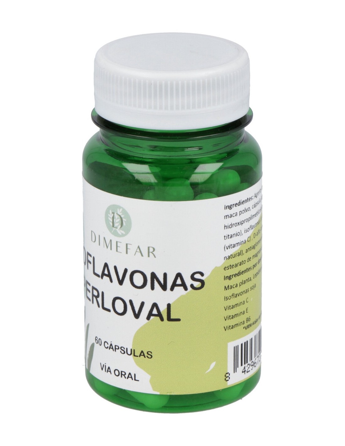 Dimefar Isoflavonas Perloval 60Cáps es un complemento alimenticio para la mujer que está elaborado a base de isoflavonas, maca y vitaminas. Este producto está diseñado para suavizar los síntomas de la menopausia como son los sofocos, insomnio y nerviosismo. Además, la vitamina B6 ayuda a regular la actividad hormonal y reduce el cansancio y la fatiga.