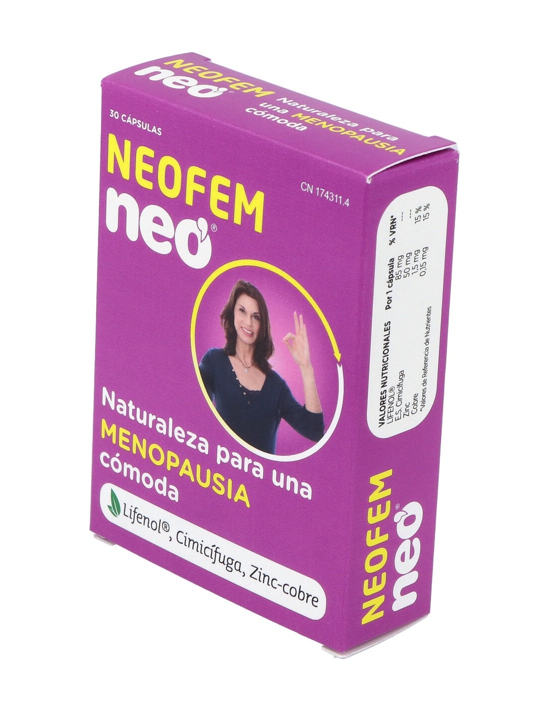 Las cápsulas Neo Neofem Bienestar es un suplemento alimenticio que ayuda a soportar mejor los síntomas de la menopausia tales como los sofocos o los sudores. Ideal para mujeres con graves síntomas de sudoración por causa de los sofocos. Con Neo Neofem Bienestar recuperarás el confort y tu estabilidad en tu salud diaria.