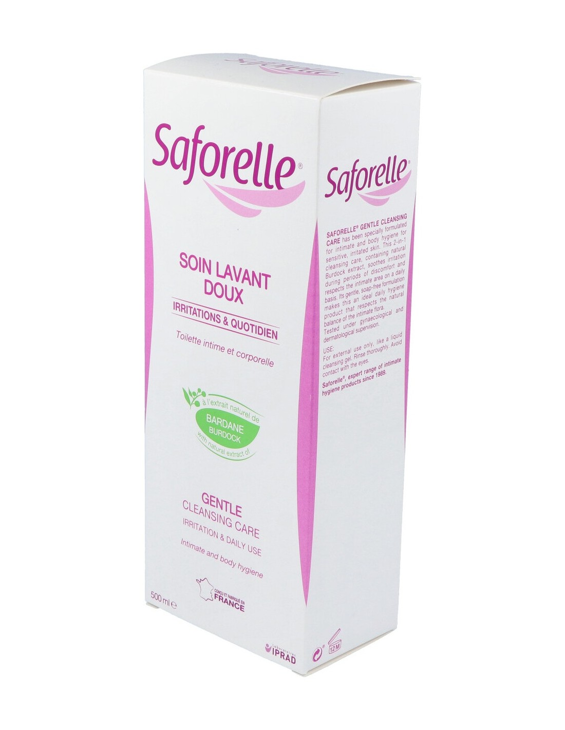Saforelle gel íntimo te protegerá la piel de cualquier irritación, picor o rojeces. Es perfecto para todo tipo de piel, sobre todo para pieles sensibles o atópicas ya que limpia con total suavidad la zona y reduce la sensación de malestar, aliviando las irritaciones. Está enriquecido con una fórmula sin jabón a base deBardana que contiene propiedades calmantes y suavizantes.