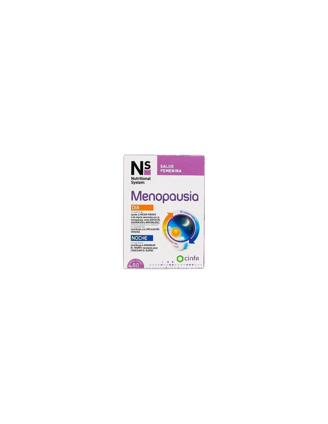 Día: Estabilizante: celulosa microcristalina, hidrox¡pro pilcelulosa, extracto seco de hojas de té verde (95% polifenoles) (Camellia sinensis), extracto seco de raíz de eleuterococo (2% eleuterósidos) (Eleutherococcus senticosus), extracto seco de raíz de ruscus (10% ruscogeninas) (Ruscus aculeatus), extracto seco de raíz de cimicífuga (2,5% glucósidos triterpénicos) (Cimicifuga racemosa), antiaglomerante: dióxido de silicio, estabilizante: estearato de magnesio, piridoxina de clorhidrato (vitamina B6), ácido fólico (vitamina B9), cianocobalamina (vitamina B12).