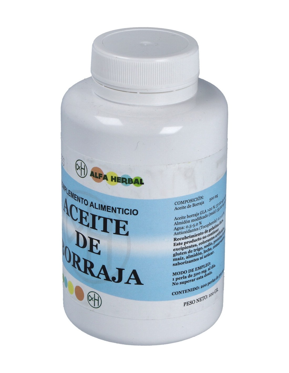 Complemento alimenticio rico en Omega 6, en especial los poliinsaturados ácido linoleico LA y gamma-linolénico GLA. Excelentes propiedades antiinflamatorias y analgésicas. Alivia malestar premestrual y menstrual en las mujeres, suaviza trastornos respiratorios por sus componentes mucilaginosos, reduce estrés, regula presión arterial e incrementa el ánimo por sus propiedades euforizantes.ACEITE DE BORRAJA 200perlas de ALFA HERBAL