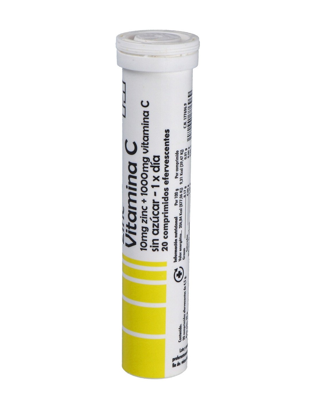 ACIDULANTE: ÁCIDO CÍTRICO (E-330); CORRECTOR DE LA ACIDEZ: BICARBONATO DE SODIO (E-500II); ÁCIDO ASCÓRBICO (VITAMINA C); AGENTE DE CARGA: INULINA; AROMA DE NARANJA; CITRATO DE ZINC; COLORANTES: ROJO DE REMOLACHA (E-162) Y ΒΒ-CAROTENO (E-160A (II)); EDULCORANTES: ASPARTAMO (E-951) Y SACARINA SÓDICA (E-954II). CANTIDAD APORTADA POR DOSIS DIARIA RECOMENDADA (1 COMPRIMIDO EFERVESCENTE): 1000 MG VITAMINA C (1250 % CDR*) Y 10 MG ZINC (100 % CDR*). *CDR: CANTIDAD DIARIA RECOMENDADA. ESTA CANTIDAD DE VITAMINA C PUEDE CAUSAR MOLESTIAS ESTOMACALES LEVES EN INDIVIDUOS SENSIBLES Y NO LA DEBEN CONSUMIR PERSONAS CON PROBLEMAS RENALES POR RIESGO A LA FORMACIÓN DE CÁLCULOS EN EL RIÑÓN. SABOR: NARANJA. SIN AZÚCAR.