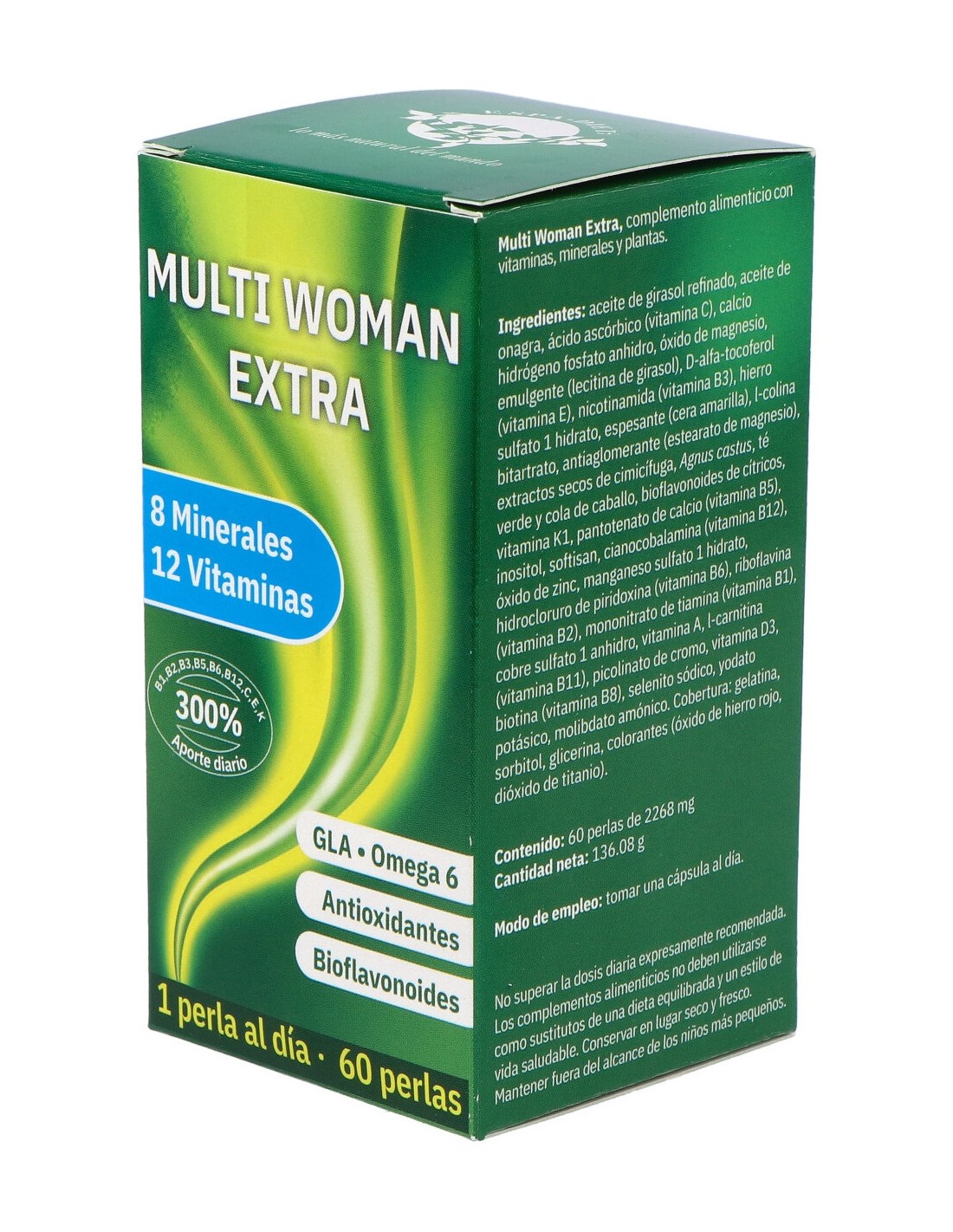 Aporta una completa combinación de nutrientes concretos, que en sinergia actúan para favorecer el correcto funcionamiento del sistema en las necesidades requeridas del día a día en la mujer.MULTI WOMAN 60perlas AXIUM de ESPADIET