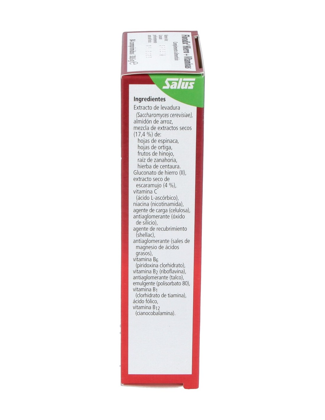 Extracto de levadura (Saccharomyces cerevisiae). Mezcla de extractos secos (17,4%) de: hojas de espinaca, hojas de ortiga, frutos de hinojo, zanahoria, hierba de centaura. Hierro, extracto seco de escaramujo (4 %), vitamina C, niacina, vitamina B6, vitamina B2, vitamina B1, ácido fólico, vitamina B12.