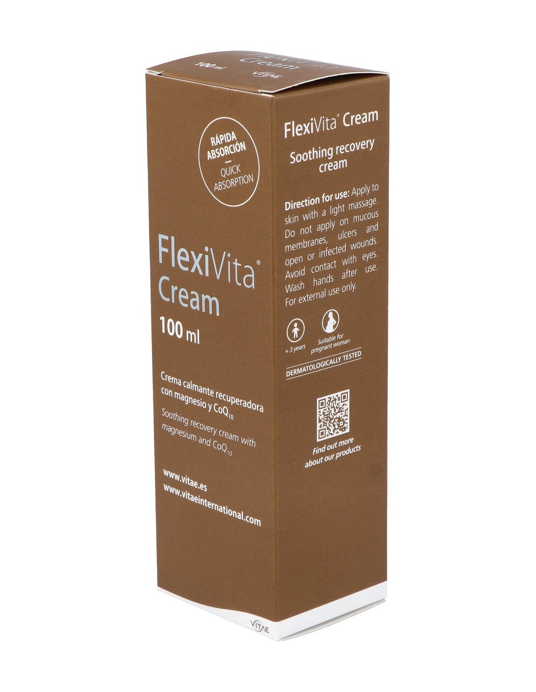 Vitae Flexivita Crema 100ml es una crema recuperadora de rápida absorción y agradable textura y olor. Está elaborada con magnesio, coenzima Q10, glucosaminoglucanos, silicio, Boswellia, árnica y harpagofito.