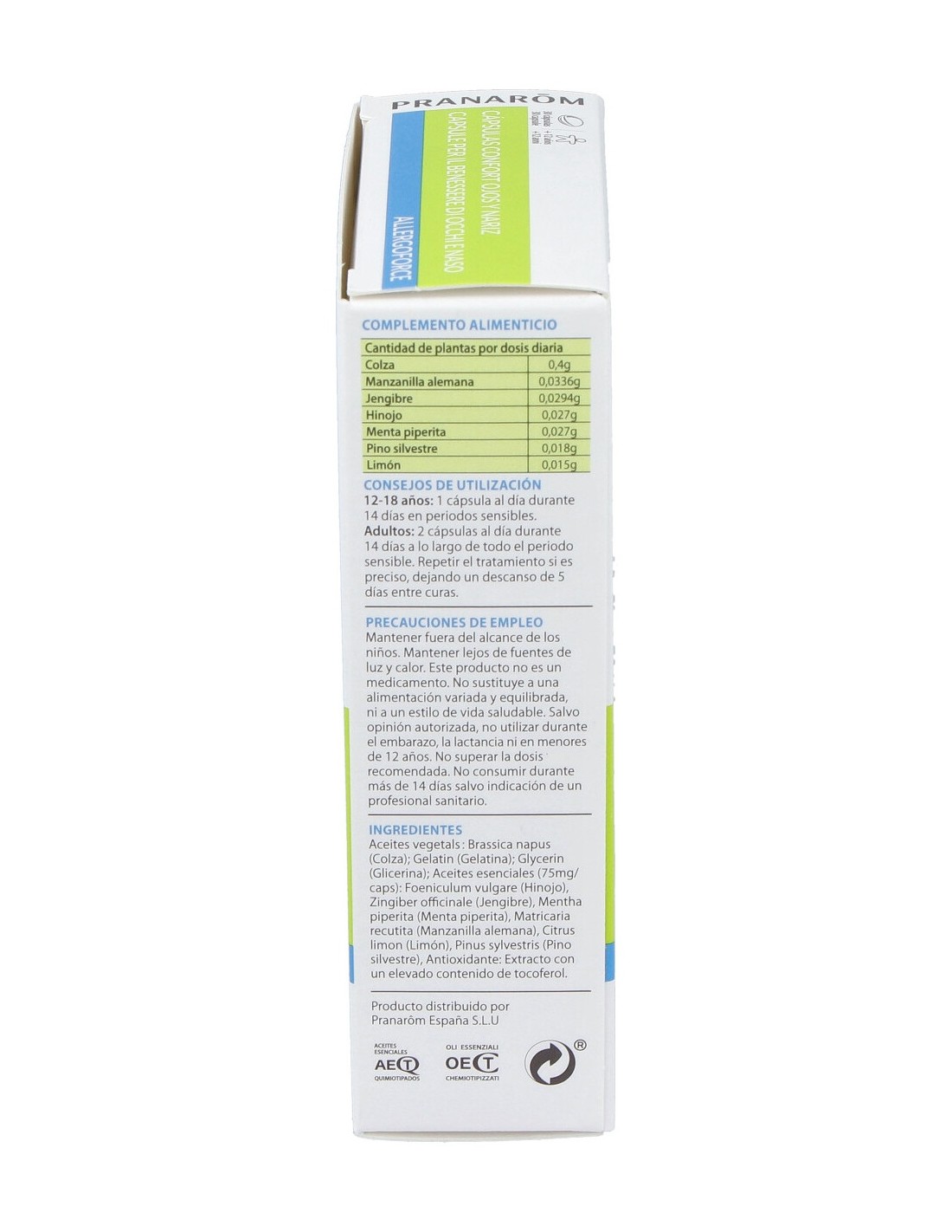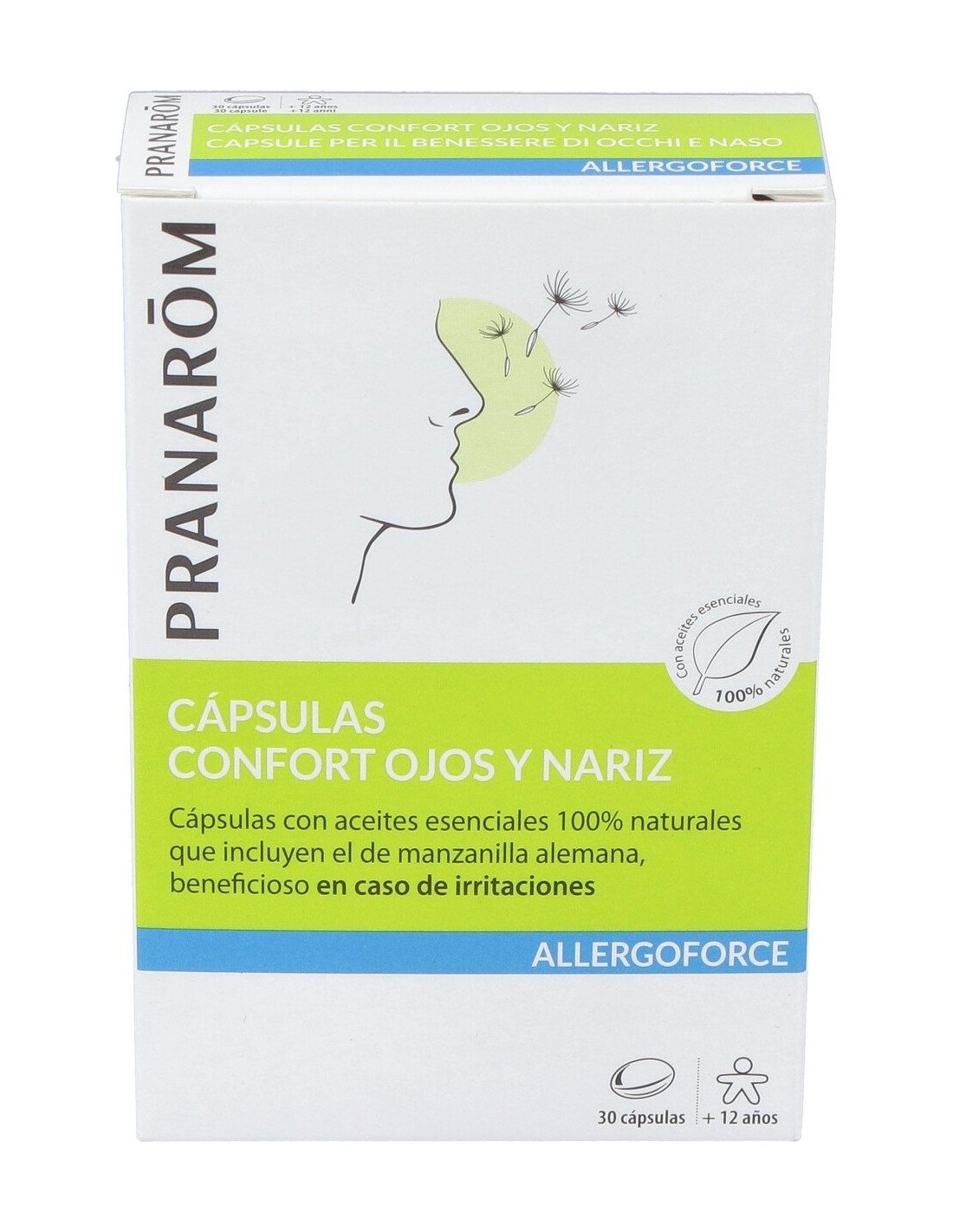 Complemento nutricional indicado para aliviar los síntomas del malestar estacional. El producto viene presentado en forma de cápsulas con aceites esenciales 100% naturales como el de manzanilla alemana. Beneficioso en caso de irritaciones de ojos y nariz.