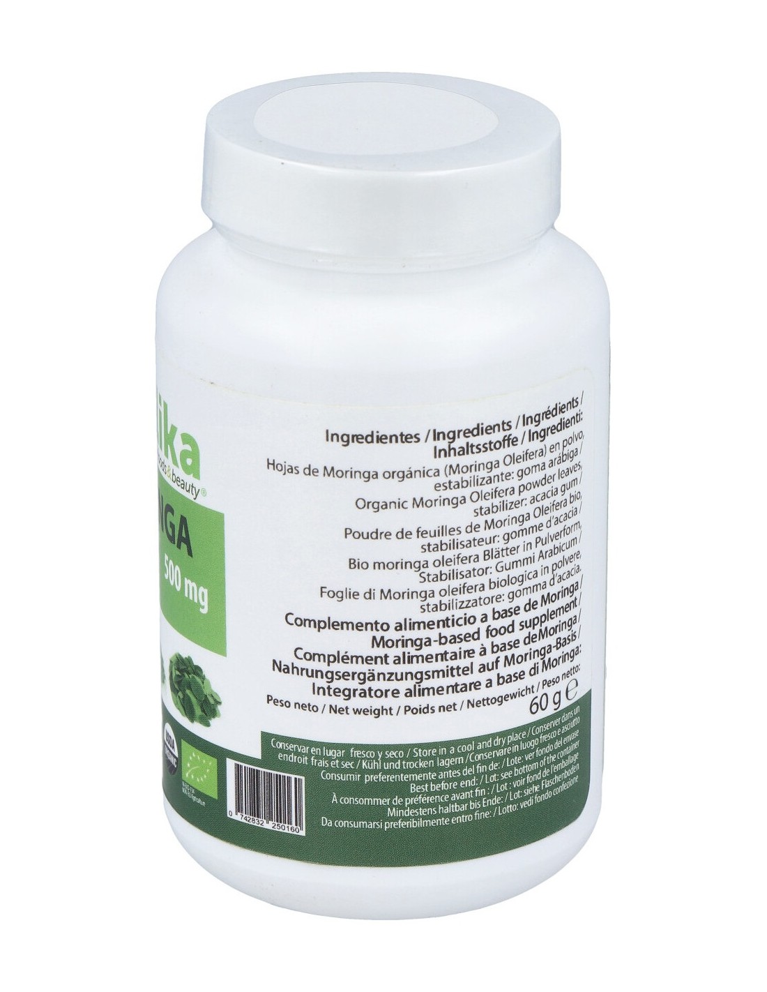 La Moringa contiene miles de veces más Zeatina que cualquier otra planta conocida, el potente nutriente antioxidante. Su espectro de vitaminas incluye las vitaminas A, B1, B2, Niacina, B6, Biotina, C, D, E, K y los minerales Calcio, Cobre, Hierro, Potasio, Magnesio, Manganeso y Zinc.