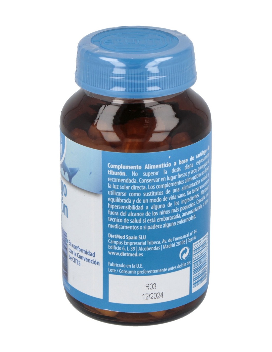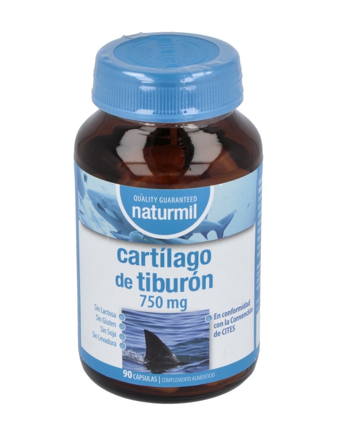 Cartílago de Tiburón , gelatina, agente de carga: maltodextrina 19, antiaglomerantes: estearato de magnesio, dióxido de silicio.