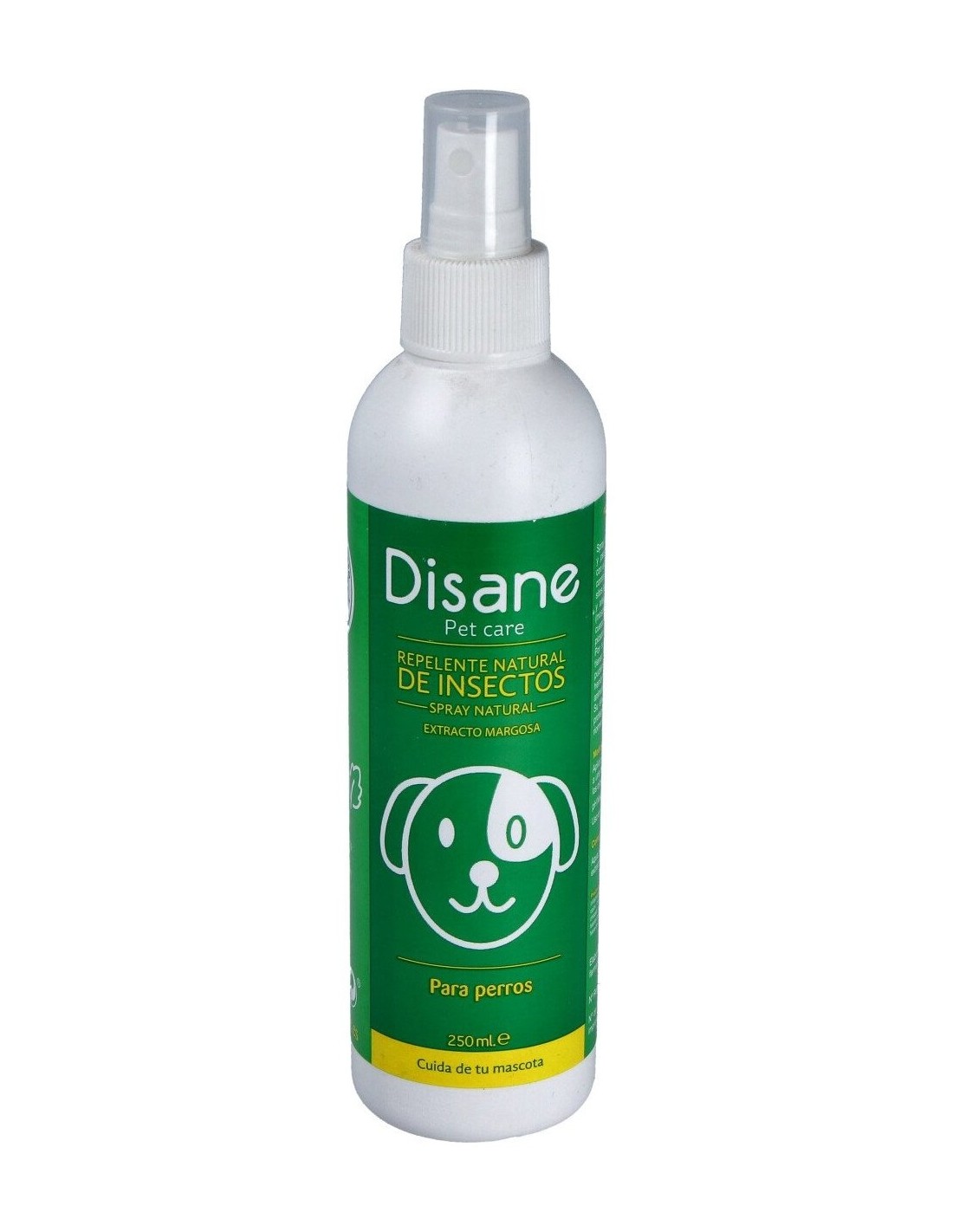Spray repelente natural de insectos y pequeños parásitos para perros con extracto de Margosa (neem), insecticida de origen natural que actúa como tratamiento curativo y preventivo de insectos y parásitos. Protege contra todo tipo de insectos parásitos (pulgas, garrapatas y ácaros) y aleja los insectos voladores (moscas, mosquitos, avispas) del cuerpo del animal previniendo de las picaduras. Por su composición natural no tiene ningún efecto secundario pudiéndose utilizar en cachorros, hembras lactantes, gestantes y animales convalecientes. Su efecto es muy persistente y protege durante 24 horas posteriormente a su aplicación. PH neutro.REPELENTE INSECTOS perro spray 250ml. VETERINARIA de DISANE
