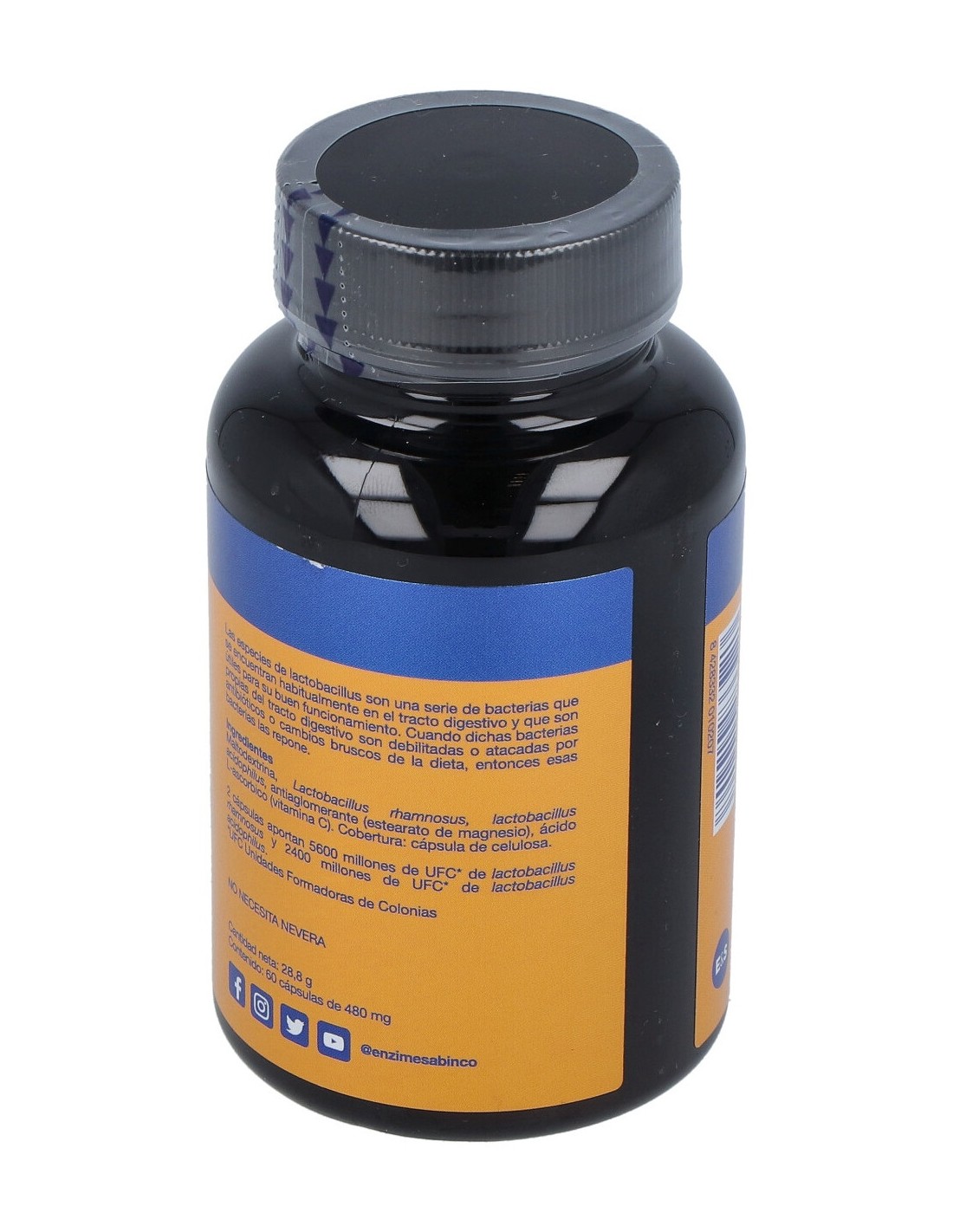 Maltodextrina (aglutinante), estearato de magnesio (lubricante) y ácido L-ascórbico (antioxidante). Cobertura: capsula de celulosa.