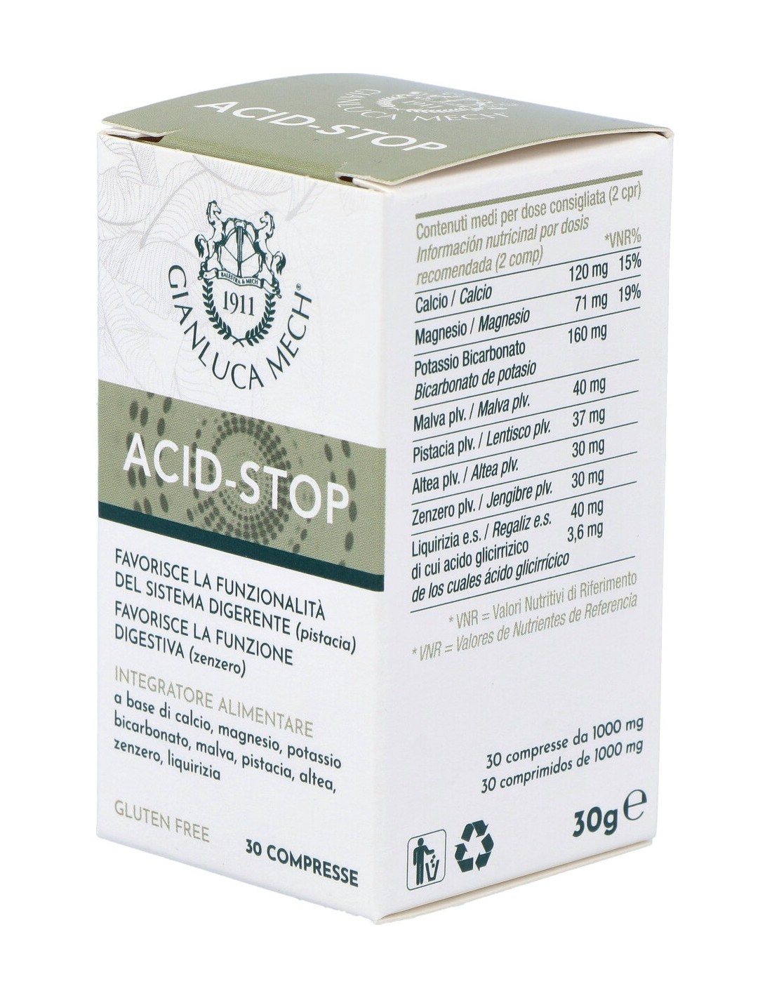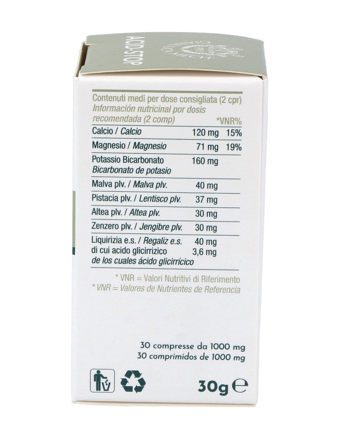 Lentisco, malva, altea, regaliz, calcio, magnesio, bicarbonato de potasio, jengibre.