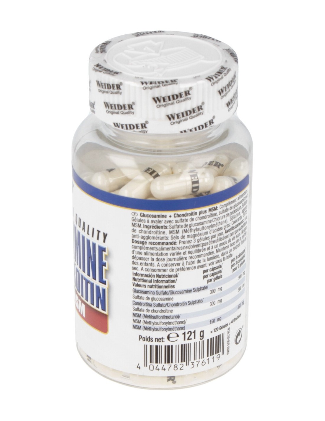 Protector de articulaciones y tendones.WEIDER GLUCOSAMINA CHOND. + MSM 120cap. de WEIDER
