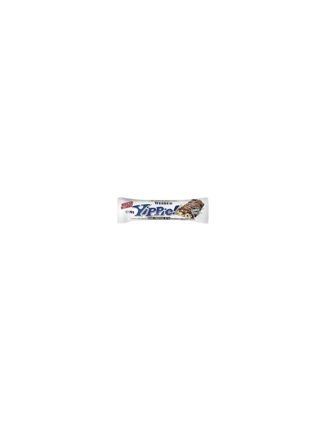 Barrita baja en carbohidratos y con relleno. Se caracteriza por su excepcional sabor y su 36% de proteínas.YIPPIE WEIDER barritas cookies-choco 12ud. de WEIDER