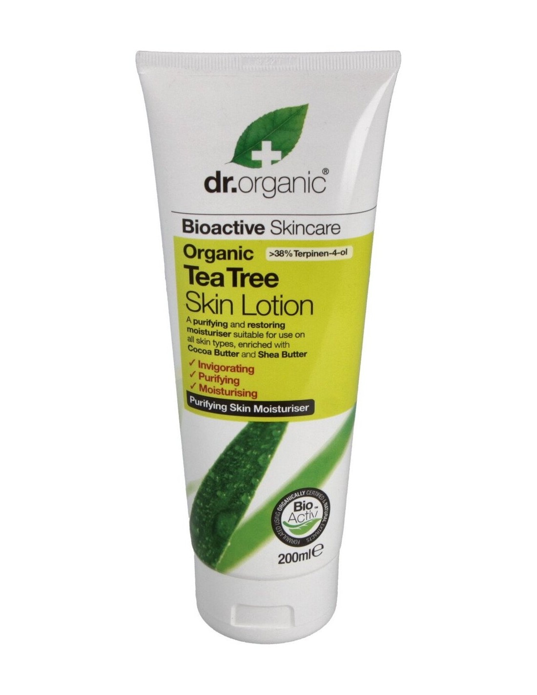 Loción reparadora, calmante e hidratante, adecuada para uso en pieles secas, dañadas y ligeramente irritadas, a base de aceite de árbol de té orgánico y enriquecido con Aloe Vera, manteca de cacao, manteca de karité, aceite de oliva, aceite de girasol, musgo irlandés, vitamina A y E. Esta fórmula no grasa se absorbe fácilmente, protege, nutre, revitaliza e hidrata la piel dejándola purificada, refrescada, cómoda y naturalmente sana.