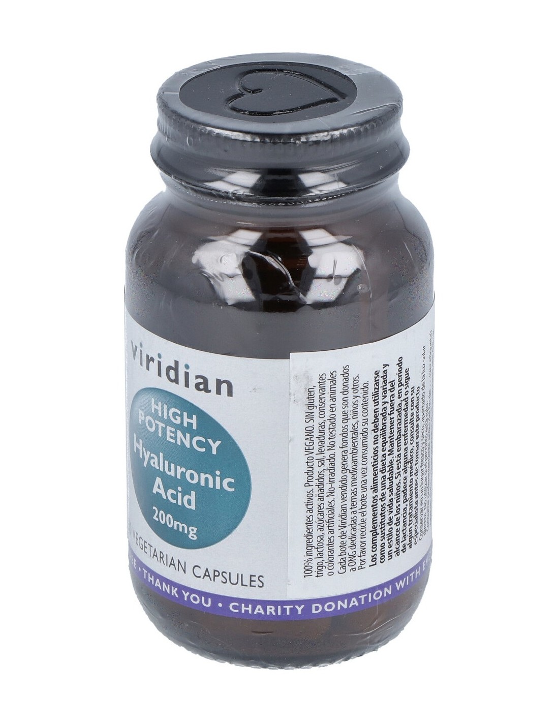 Complemento alimenticio a base de ácido hialurónico. Apto para veganos. No irradiado. No testado en animales.ACIDO HIALURONICO 200mg. 30cap.veg. de VIRIDIAN
