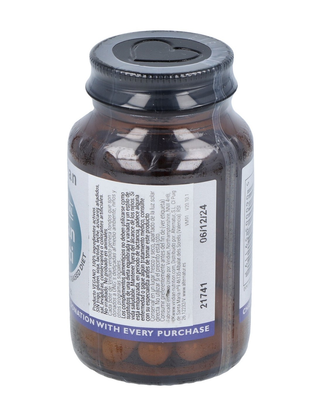 En una base de alfalfa, espirulina y arándano. Cápsula vegana (Hydroxymethylpropyl celulosa)