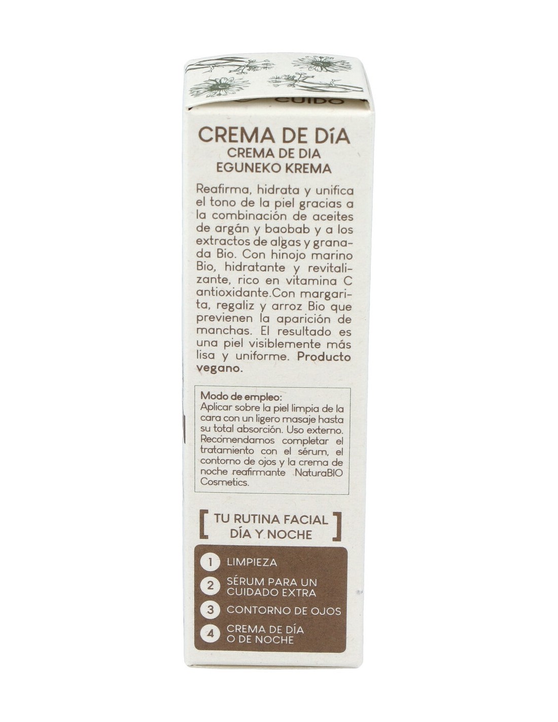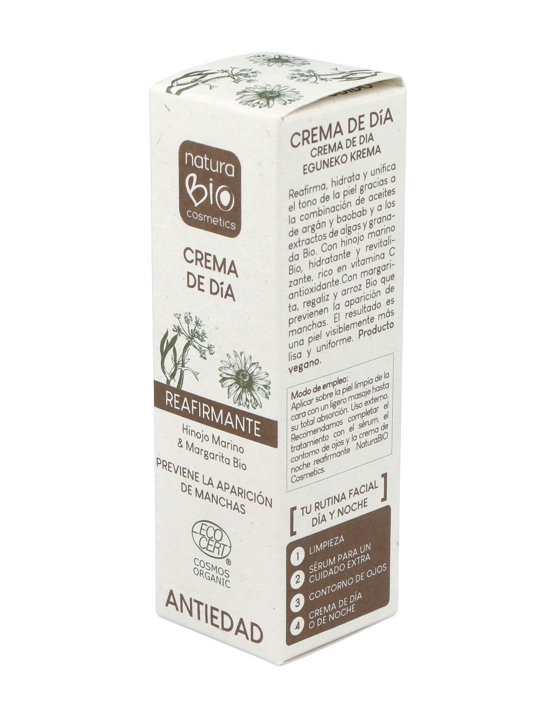 Reafirma, hidrata y unifica el tono de la piel. Previene la aparición de manchas. Apta para veganos. Packaging reciclado. COSMOS ORGANIC.
