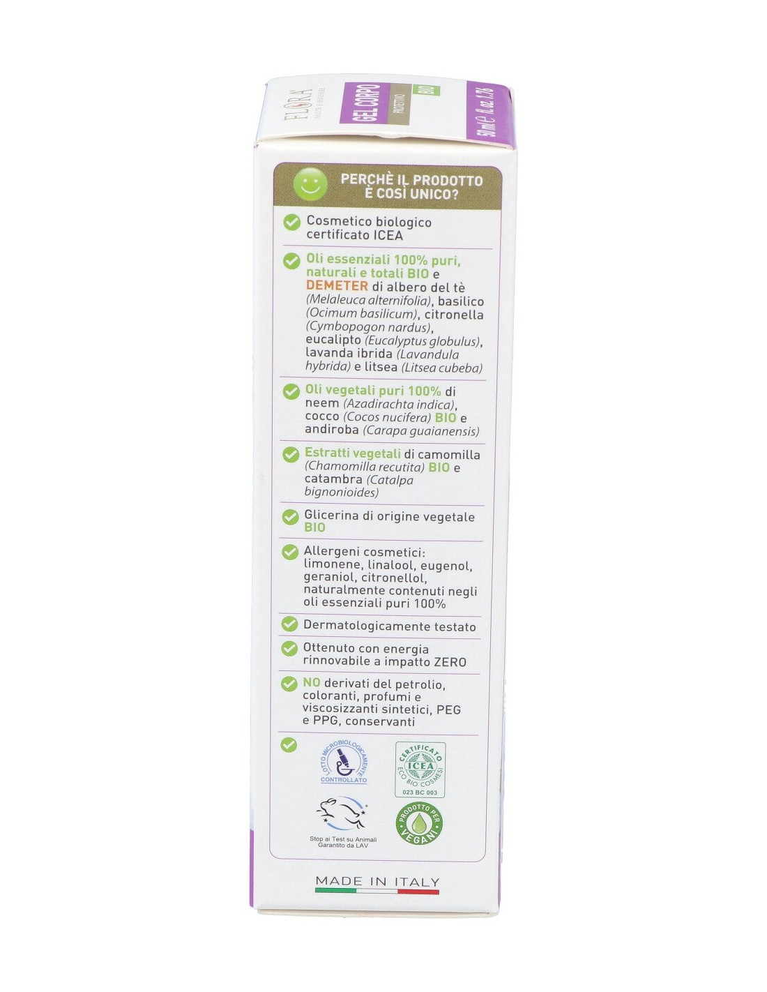 Aqua, Glycerin*, Lavandula hybrida oil*, Melaleuca alternifolia leaf oil*, Eucalyptus globulus leaf oil*, Cymbopongon nardus oil*, Litsea cubeba oil, Melia azadirachta seed oil*, Carapa guaianensis oil, Cocos nucifera oil*, Catalpa bignonioides leaf extract, Chamomilla recutita flower extract*, Tocopherol, Citric Acid, Xanthan Gum, Sodium Levulinate, Sodium Anisate, Glyceryl Caprylate, Linalool, Limonene, Geraniol, Citronellol, Eugenol.