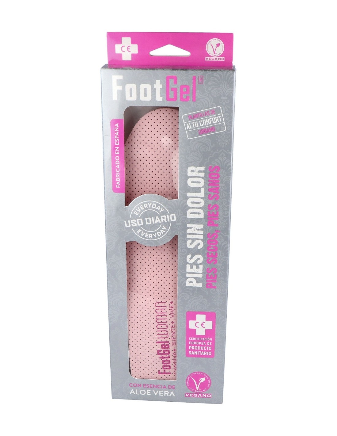 Diseño patentado de máxima amortiguación, reduce la presión sobre las articulaciones. Con sistema exclusivo de respiración, con tejido transpirable antimicrobiano y termoregulador. Apto para veganos.FOOTGEL plantillas gel mujer aloe vera talla 39-42 de FOOTGEL