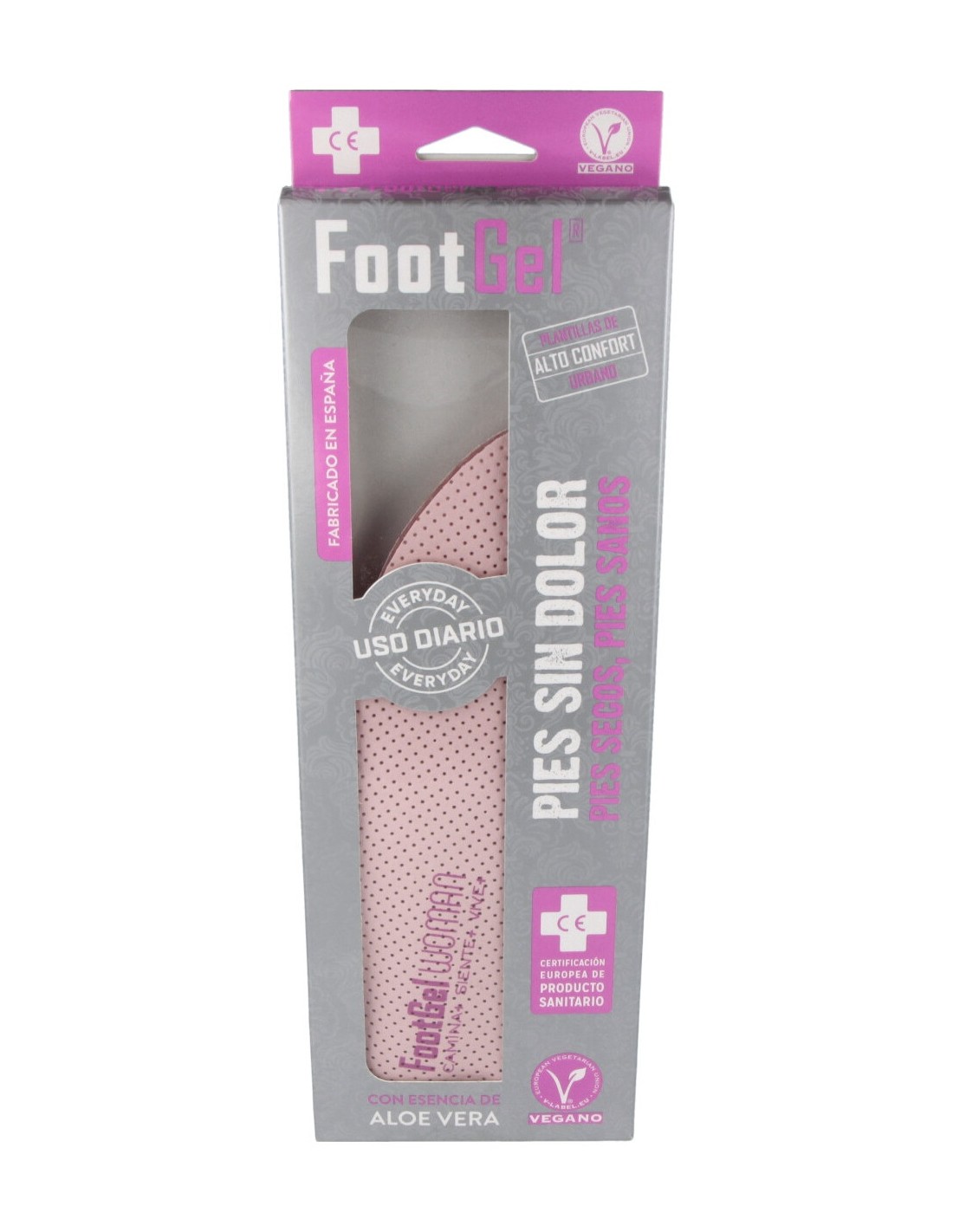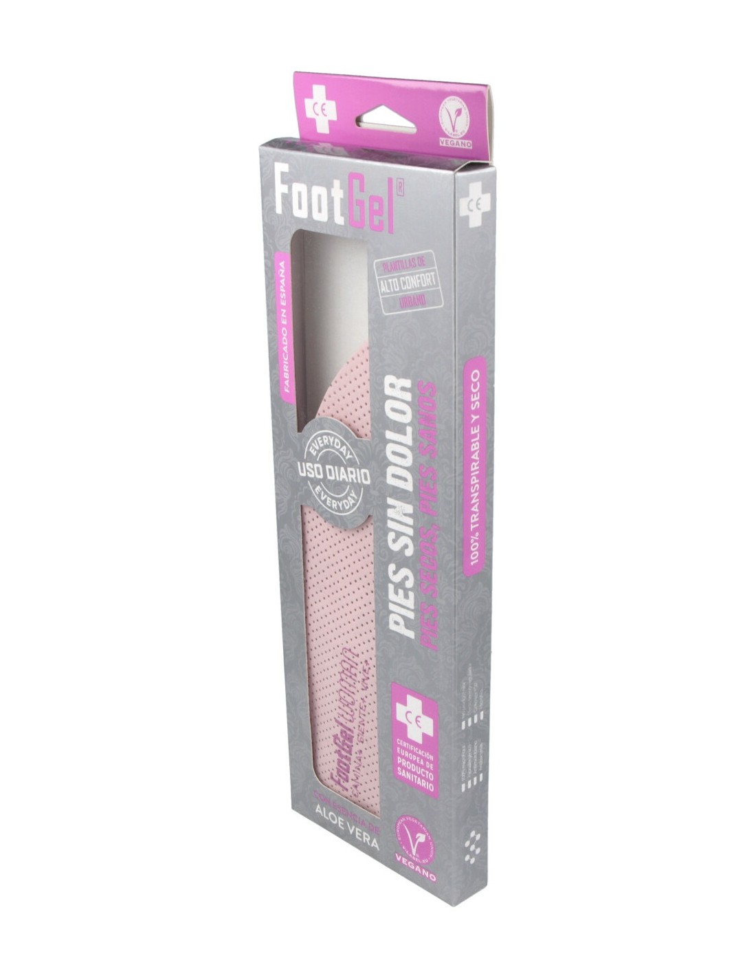 Diseño patentado de máxima amortiguación, reduce la presión sobre las articulaciones. Con sistema exclusivo de respiración, con tejido transpirable antimicrobiano y termoregulador. Apto para veganos.FOOTGEL plantillas gel mujer aloe vera talla 35-38 de FOOTGEL