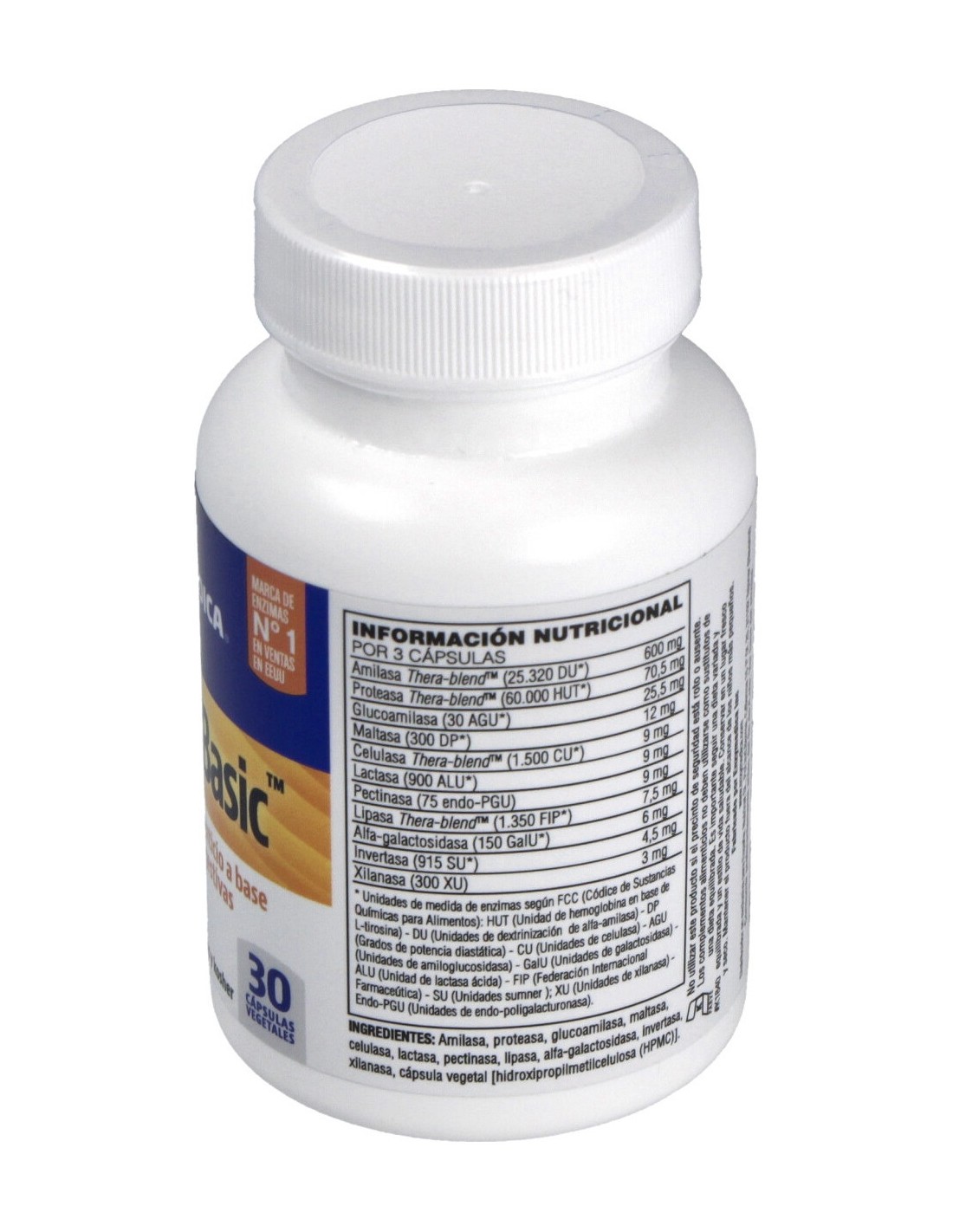 Suplemento a base de enzimas digestivas Thera-blend™. Apto para vegetarianos, veganos y Kosher.