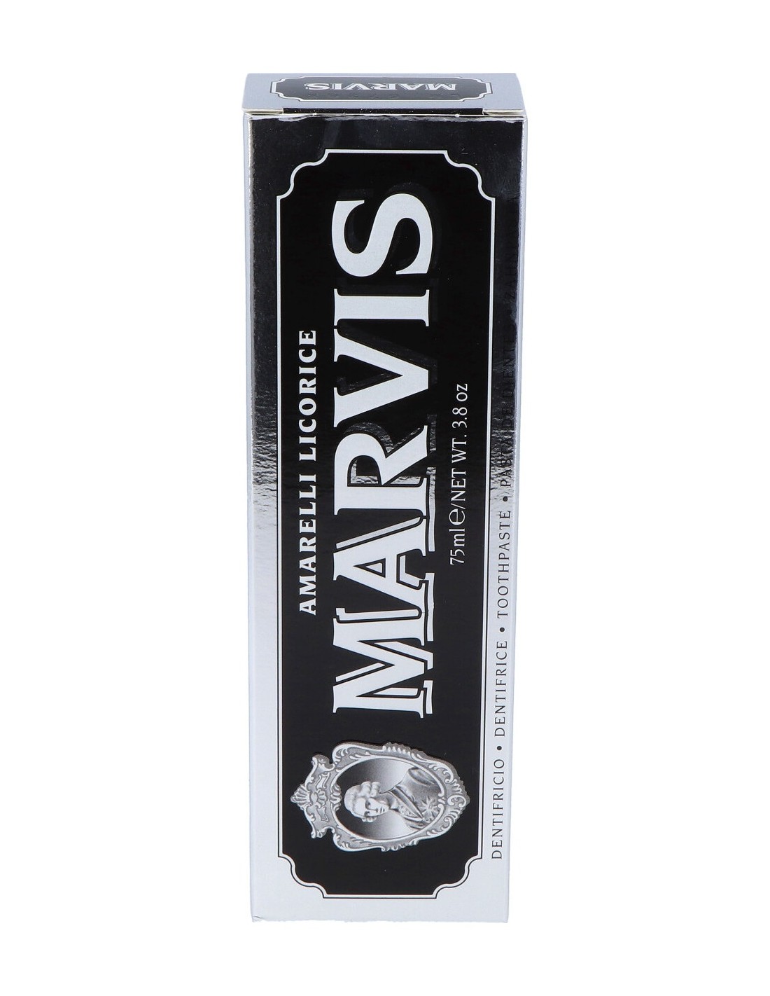 Gusto exquisito y fuerte que combina el dulce-amargo del regaliz con el frescor de la hierbabuena.MARVIS pasta de dientes sabor regaliz y menta 75ml de AMARELLI