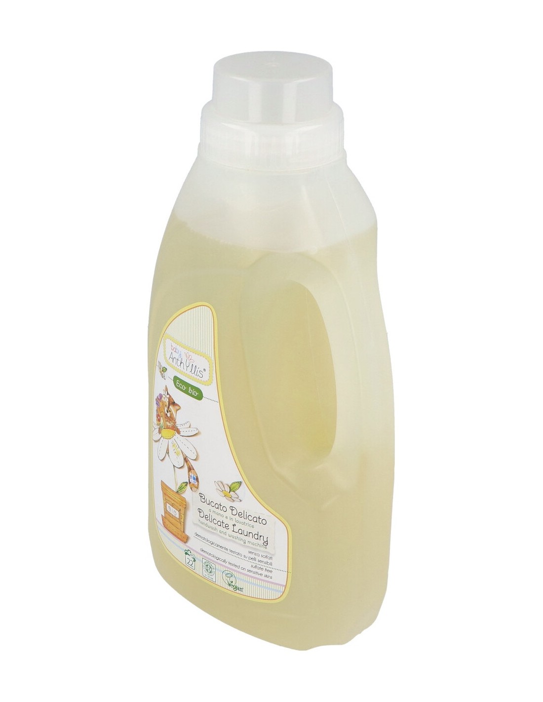 Fórmula delicada, eficaz y concentrada, que respeta la piel sensible. Con tensioactivos de Aceite de Oliva y Colza ecológicos. Dermatológicamente testado en pieles sensibles. Libre de derivados del petróleo, sulfatos, conservantes sintéticos y alérgenos. Certificado ICEA y Cruelty Free.