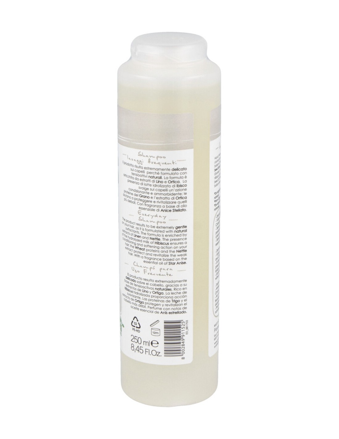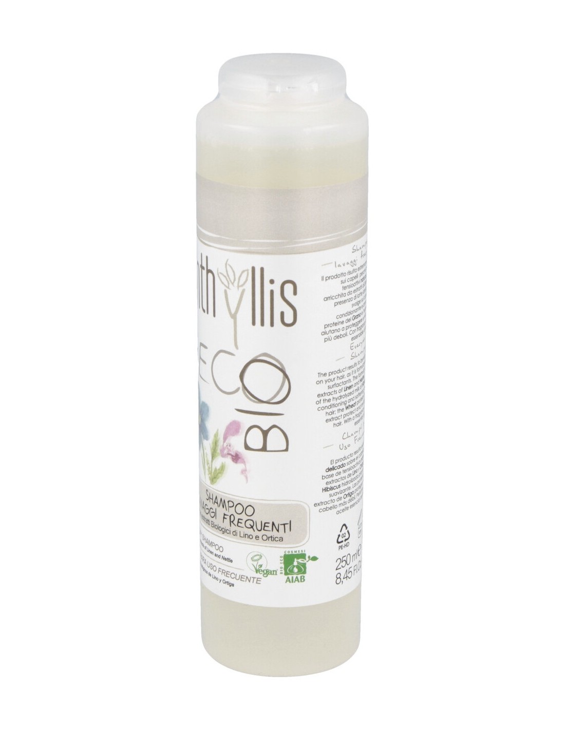Champú con extracto de lino y ortiga. Elaborado con tensioactivos de origen natural y extractos de agricultura ecológica. Muy delicado y apto para todo tipo de cabello y para uso frecuente. Contiene extracto glicérico de lino, extracto de hibiscus, proteínas de trigo y extracto de ortiga y aceites vegetales que dejan el cabello suave, limpio e hidratado. Apto para veganos.