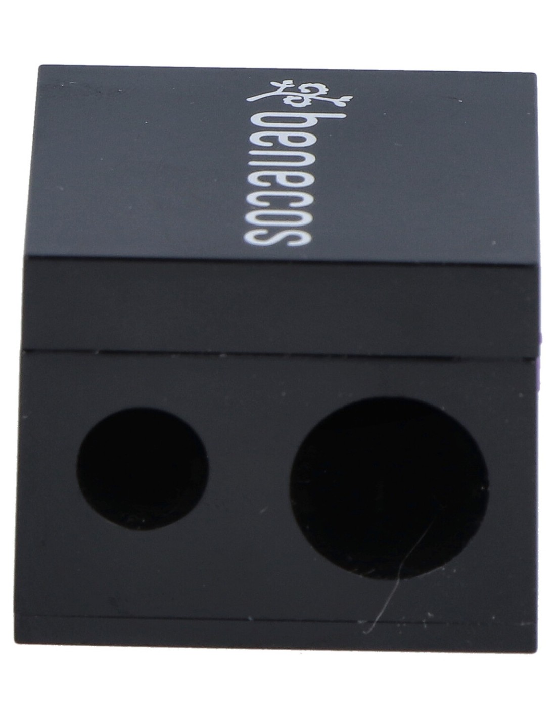 Sacapuntas práctico con tapa para que la viruta quede en su interior. Con dos orificios de diferente tamaño para lápices finos y gruesos de maquillaje.